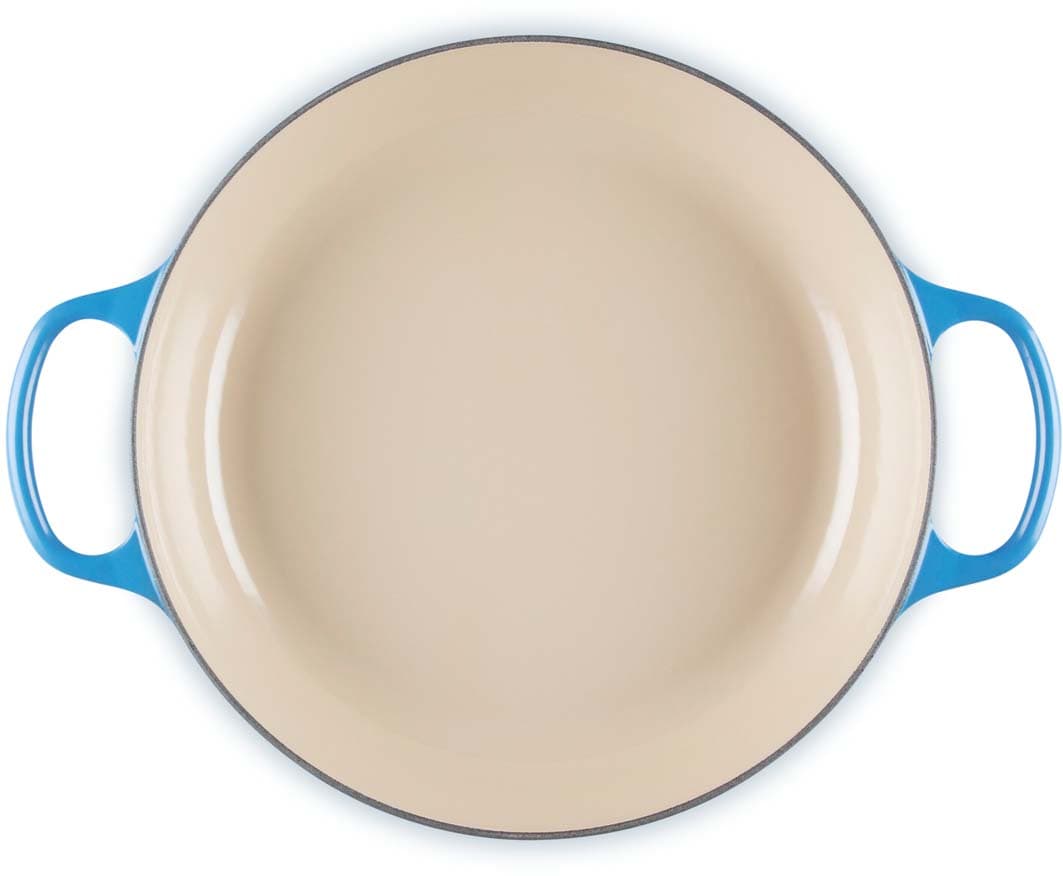Der gusseiserne Gourmet-Profitopf Signature von Le Creuset mit 30 cm Durchmesser ist perfekt für eine Vielzahl von Gerichten – von einfachen, cremigen Risottos über zartes, schmackhaftes Fleisch und Gemüse bis hin zu knusprig, goldbraun gebackenen Pasteten und Tartes. Dank seiner breiten, flachen Form und den niedrigen Seitenwänden eignet er sich ideal zum Anbraten von Fleisch und Gemüse, für herzhafte Aufläufe, die im Ofen überbacken werden, zum Backen und zum stilvollen Servieren direkt am Tisch.