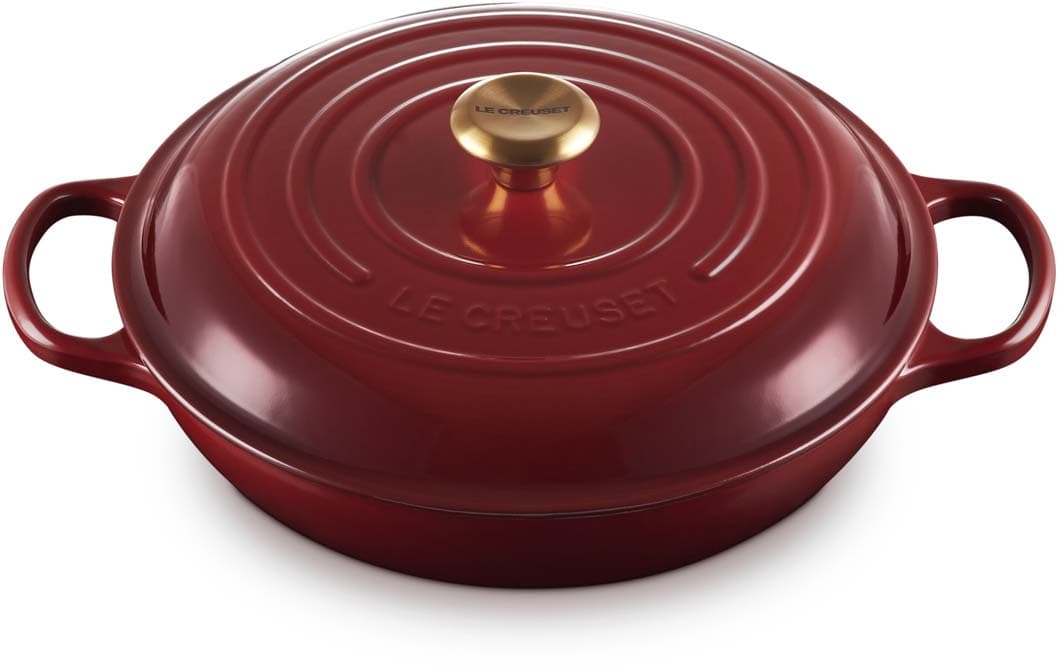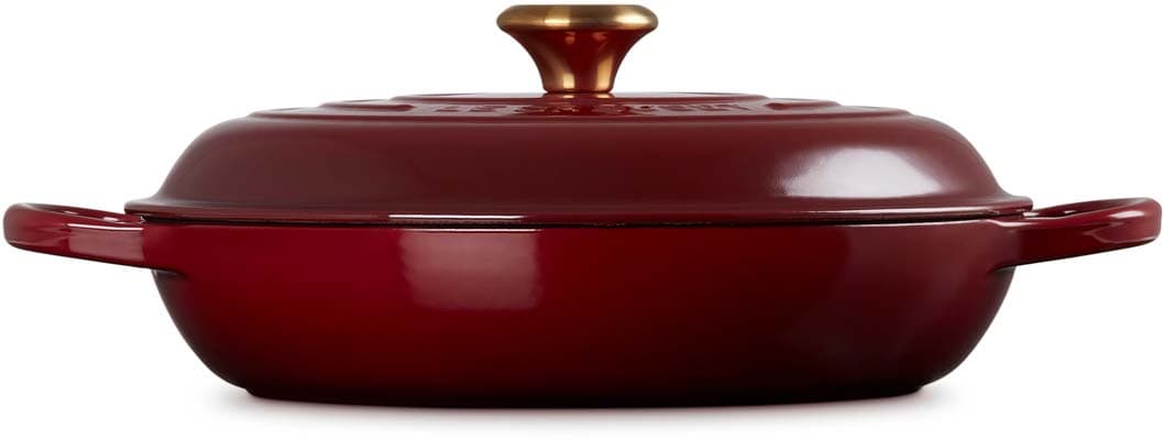 Der gusseiserne Gourmet-Profitopf Signature von Le Creuset mit 30 cm Durchmesser ist perfekt für eine Vielzahl von Gerichten – von einfachen, cremigen Risottos über zartes, schmackhaftes Fleisch und Gemüse bis hin zu knusprig, goldbraun gebackenen Pasteten und Tartes. Dank seiner breiten, flachen Form und den niedrigen Seitenwänden eignet er sich ideal zum Anbraten von Fleisch und Gemüse, für herzhafte Aufläufe, die im Ofen überbacken werden, zum Backen und zum stilvollen Servieren direkt am Tisch.