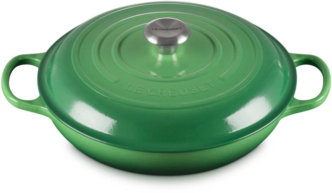 Der gusseiserne Gourmet-Profitopf Signature von Le Creuset mit 30 cm Durchmesser ist perfekt für eine Vielzahl von Gerichten – von einfachen, cremigen Risottos über zartes, schmackhaftes Fleisch und Gemüse bis hin zu knusprig, goldbraun gebackenen Pasteten und Tartes. Dank seiner breiten, flachen Form und den niedrigen Seitenwänden eignet er sich ideal zum Anbraten von Fleisch und Gemüse, für herzhafte Aufläufe, die im Ofen überbacken werden, zum Backen und zum stilvollen Servieren direkt am Tisch.