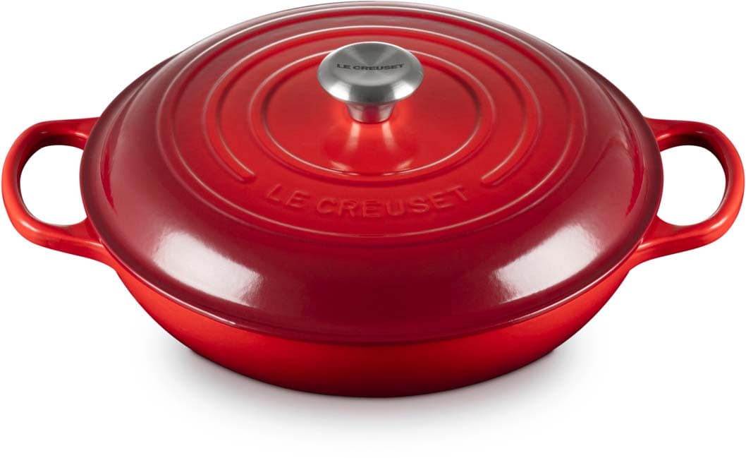 Der gusseiserne Gourmet-Profitopf Signature von Le Creuset mit 30 cm Durchmesser ist perfekt für eine Vielzahl von Gerichten – von einfachen, cremigen Risottos über zartes, schmackhaftes Fleisch und Gemüse bis hin zu knusprig, goldbraun gebackenen Pasteten und Tartes. Dank seiner breiten, flachen Form und den niedrigen Seitenwänden eignet er sich ideal zum Anbraten von Fleisch und Gemüse, für herzhafte Aufläufe, die im Ofen überbacken werden, zum Backen und zum stilvollen Servieren direkt am Tisch.