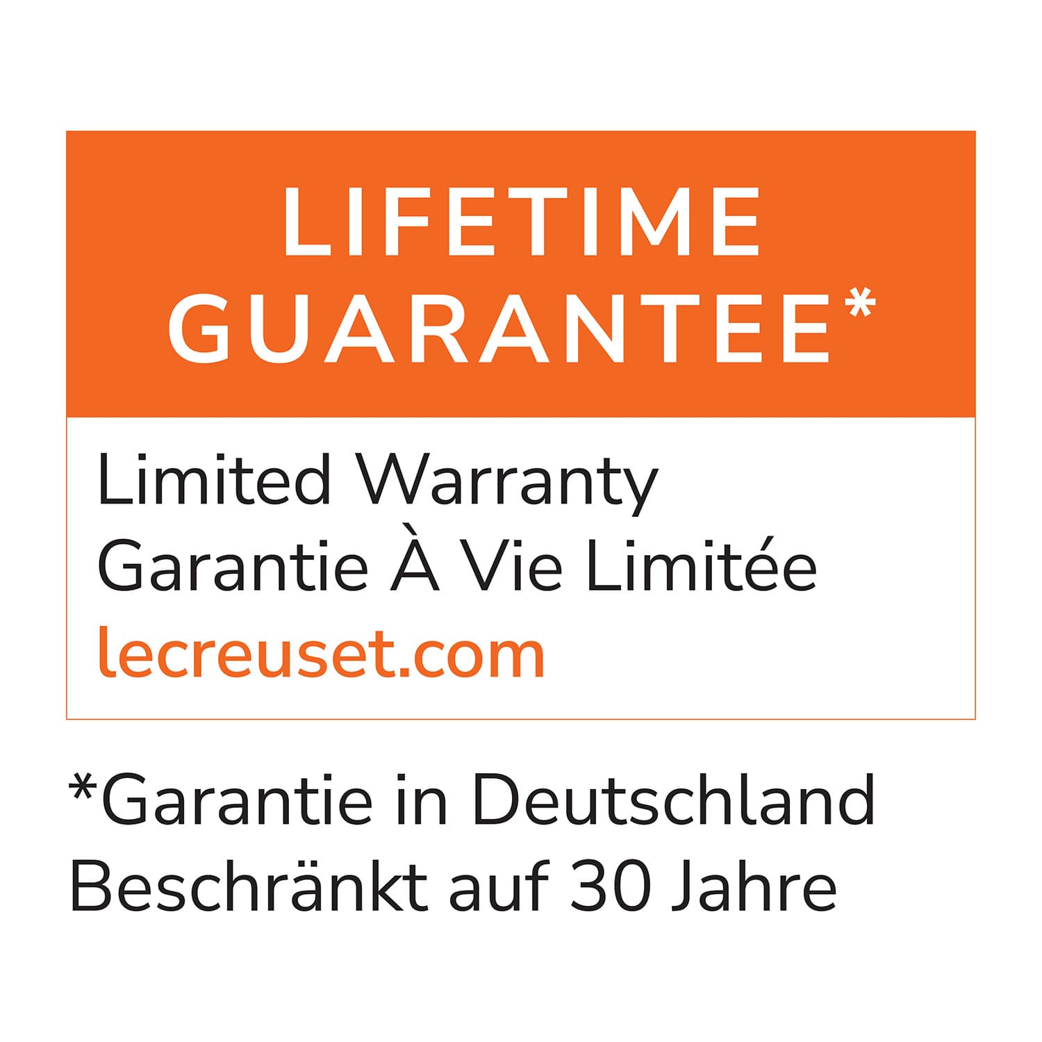 Jedes Produkt aus Gusseisen ist ein Unikat – seit 1925 handgefertigt in der Gießerei in Frankreich. Le Creuset gewährt in Deutschland auf das Gusseisensortiment eine Garantie von 30 Jahren. In Österreich und der Schweiz gilt darauf eine lebenslange Garantie.