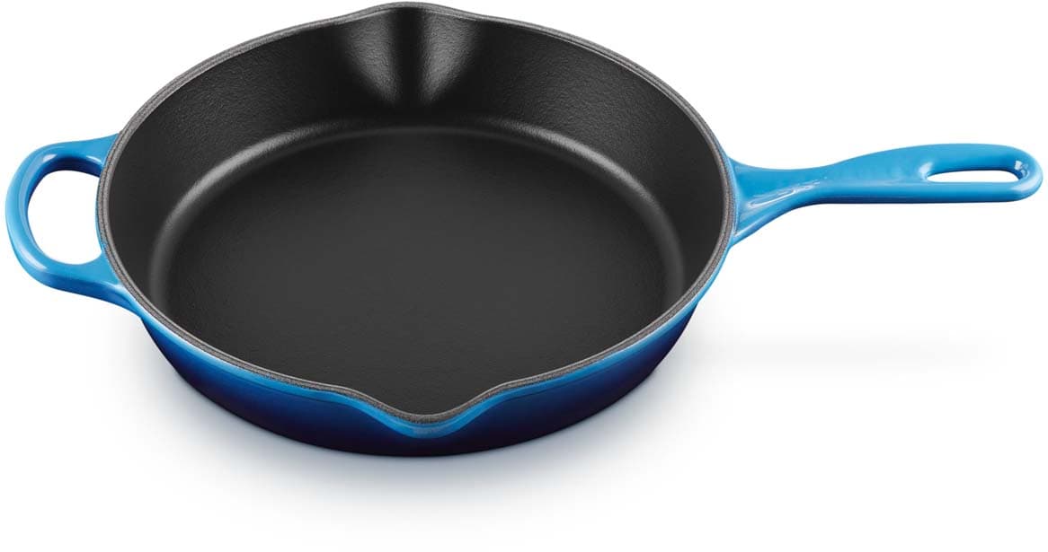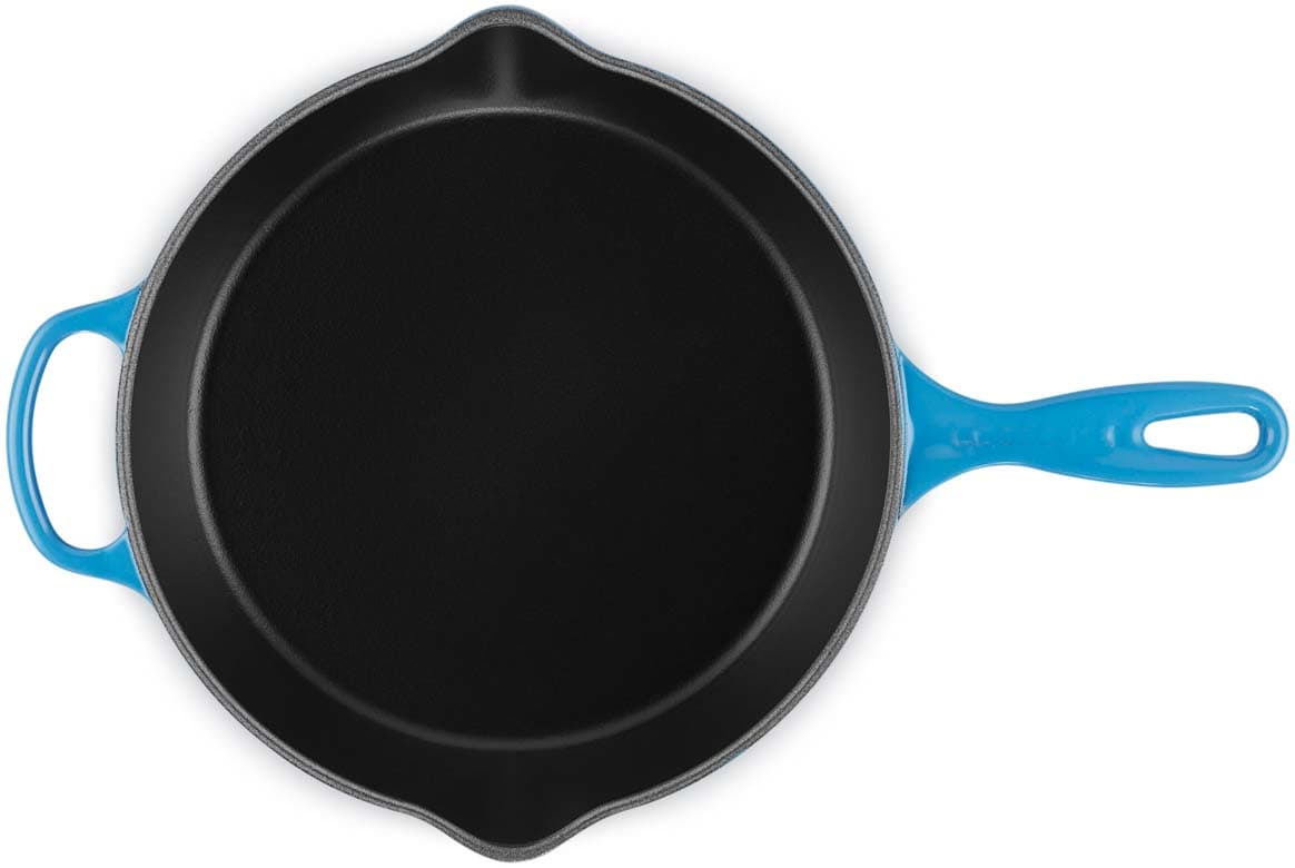 Die Pfanne verfügt über einen ergonomischen Hauptgriff und einen Gegengriff für sicheres und komfortables Handling. Zwei Ausgießer ermöglichen ein tropffreies Ausgießen. Die robuste und langlebige Emaillierung sorgt für eine einfache Reinigung und schützt das Gusseisen vor Abnutzung. Das Material gewährleistet eine gleichmäßige Wärmeverteilung, sodass Speisen optimal gegart werden. Die farbenfrohe Emaillierung ergänzt jeden Küchenstil und macht die Pfanne zu einem echten Blickfang.