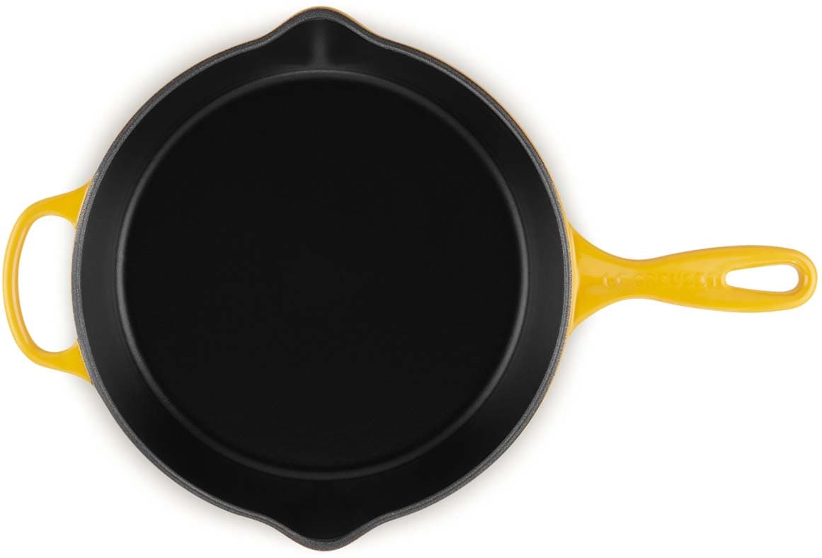 Die Pfanne verfügt über einen ergonomischen Hauptgriff und einen Gegengriff für sicheres und komfortables Handling. Zwei Ausgießer ermöglichen ein tropffreies Ausgießen. Die robuste und langlebige Emaillierung sorgt für eine einfache Reinigung und schützt das Gusseisen vor Abnutzung. Das Material gewährleistet eine gleichmäßige Wärmeverteilung, sodass Speisen optimal gegart werden. Die farbenfrohe Emaillierung ergänzt jeden Küchenstil und macht die Pfanne zu einem echten Blickfang.