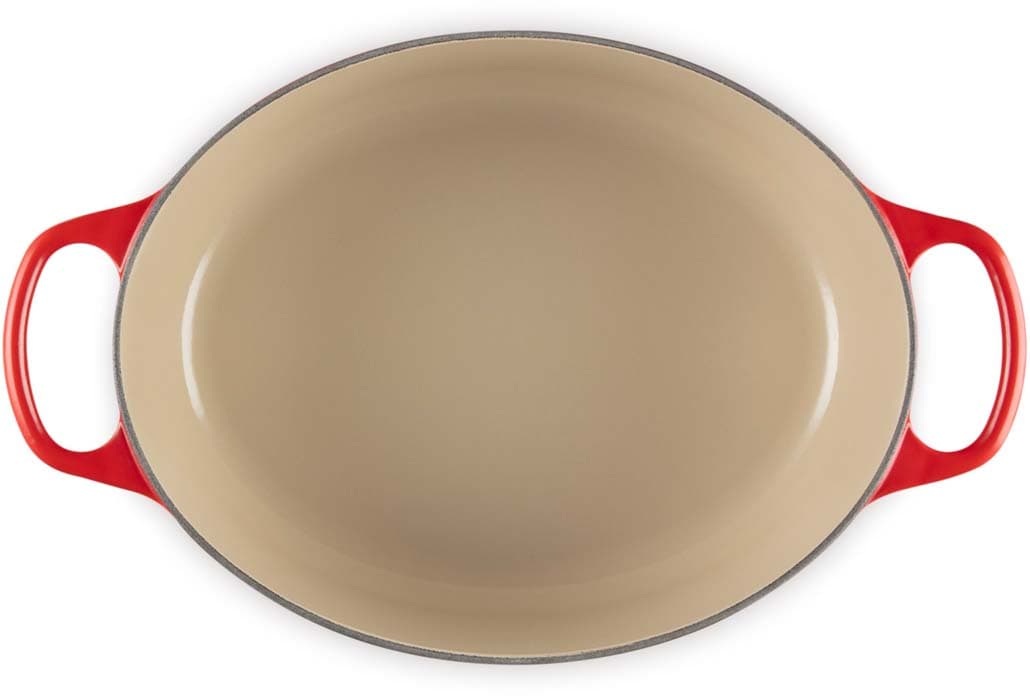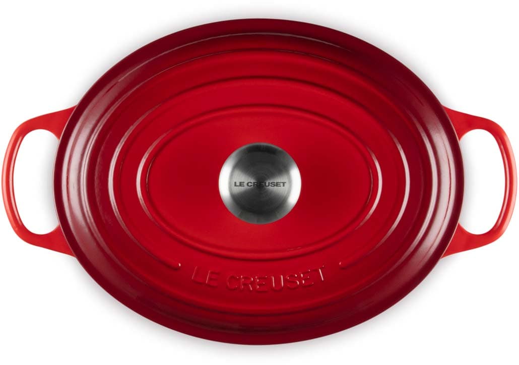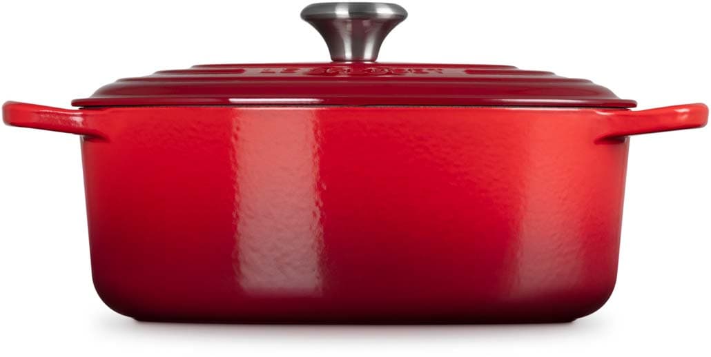 Der ovale gusseiserne Bräter Signature von Le Creuset mit 29 cm Durchmesser eignet sich ideal für größere Fleischstücke und ganze Braten. Versuchen Sie zum Beispiel, ein ganzes Hähnchen mit aufgesetztem Deckel zu garen – das Fleisch wird wunderbar saftig, fällt vom Knochen und der Ofen bleibt sauber. Der ovale Bräter ist genauso vielseitig wie sein rundes Pendant. Er bietet ausreichend Platz, um eine ganze Lammkeule zuzubereiten, und ist gleichzeitig schmal genug, um im Ofen zusätzlichen Raum für Beilagen zu lassen.