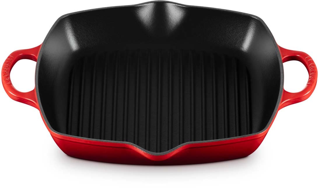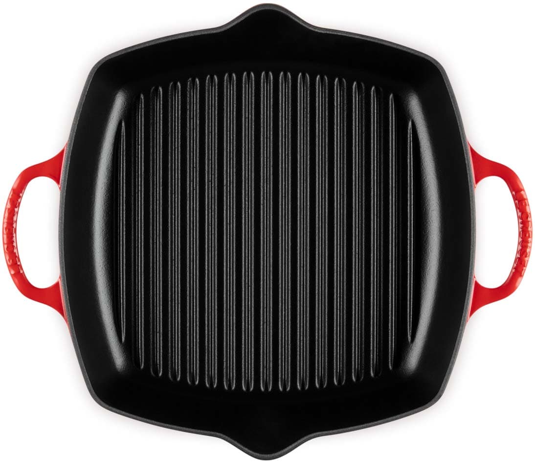Die quadratische Grillpfanne Signature von Le Creuset mit 30 cm Durchmesser und zwei stabilen Griffen ist ideal für das Grillen größerer Portionen – ob Fleisch, Fisch, Gemüse oder Sandwiches. Die gerillte Oberfläche sorgt für authentische Grillstreifen und lässt überschüssiges Fett ablaufen, sodass Speisen aromatisch und fettarm gelingen. Dank der beiden Griffe lässt sich die Pfanne auch voll beladen sicher und komfortabel handhaben.