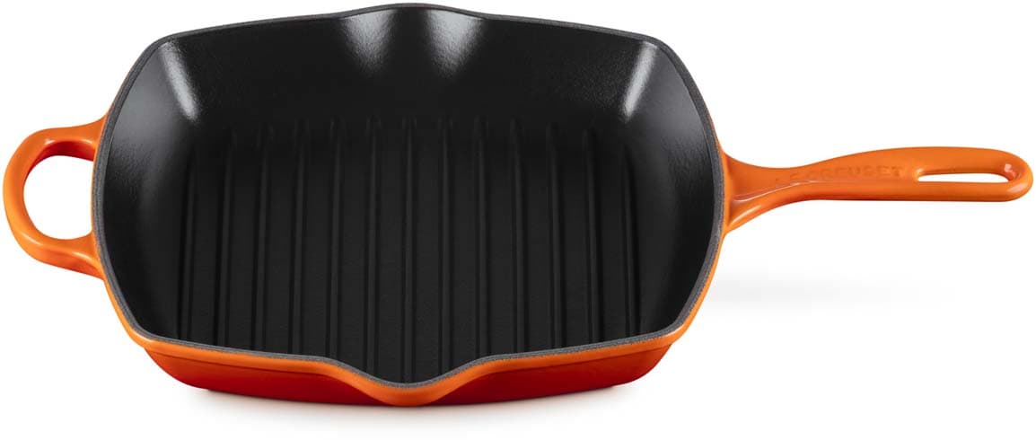 Die quadratische Grillpfanne Signature von Le Creuset mit 26 cm Durchmesser in quadratischer Form ist ideal für das Grillen von Fleisch, Fisch, Gemüse oder Sandwiches – ganz ohne Outdoor-Grill. Die gerillte Oberfläche sorgt für authentische Grillstreifen und lässt überschüssiges Fett ablaufen, sodass Speisen besonders aromatisch und fettarm gelingen. Dank der kompakten Größe passt die Pfanne auf jede Herdplatte und ist ein unverzichtbarer Helfer für gesundes Grillen zu Hause.