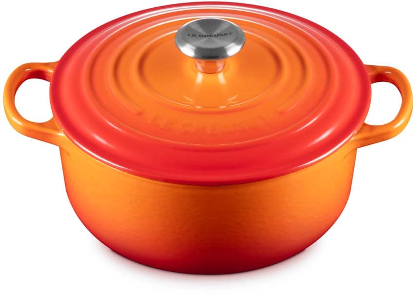 Der runde gusseiserne Bräter Signature von Le Creuset mit 20 cm Durchmesser eignet sich ideal für eine Vielzahl von One-Pot-Rezepten – von einem schnell zubereiteten Pasta-Gericht bis zu einem langsam gekochten, aromatischen Eintopf. Er ist ebenso perfekt für zarte, saftige Braten, wie auch für frisch gebackene Brote und Kuchen.