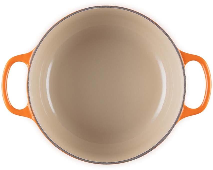 | Sonderfunktion | • Mittlere oder niedrige Hitze liefert die besten Ergebnisse beim Kochen, auch beim Braten und Anbraten. Die Benutzung von Le Creuset Silikon-Accessoires oder Kochutensilien aus hitzebeständigem Kunststoff oder Holz wird empfohlen. • Für gleichmäßig gegarte Speisen sollte die Auflagefläche des Produktes der Größe des Kochfeldes entsprechen. Dadurch wird zudem das Risiko einer Beschädigung der Griffe und Seiten des Produktes gemindert. • Für Gusseisenprodukte mit einer hellen Innenemaille gilt: das Produkt niemals leer erhitzen. • Empfohlene Öle: Pflanzen-, Raps- und Sonnenblumenöl. • Das Produkt niemals über eine Glas- oder Glaskeramikoberfläche o.ä. ziehen. Um Beschädigung der Oberflächen zu vermeiden, stets anheben. • Geeignet für den Backofen und den Backofen mit Grillfunktion bis 260 °C. Der Mindestabstand zum Grill im Backofen beträgt 6,5 cm. • Beim Umgang mit heißen Produkten stets Ofenhandschuhe verwenden. • Das Produkt vor der Reinigung abkühlen lassen. Bei zu schnellem Abwaschen kann ein Thermoschock auftreten, der zu Rissen oder zum Abplatzen der Emaille führen kann. • Reinigung von Hand empfohlen. • Geeignet für alle Herdarten, den Gefrierschrank und die Spülmaschine. |