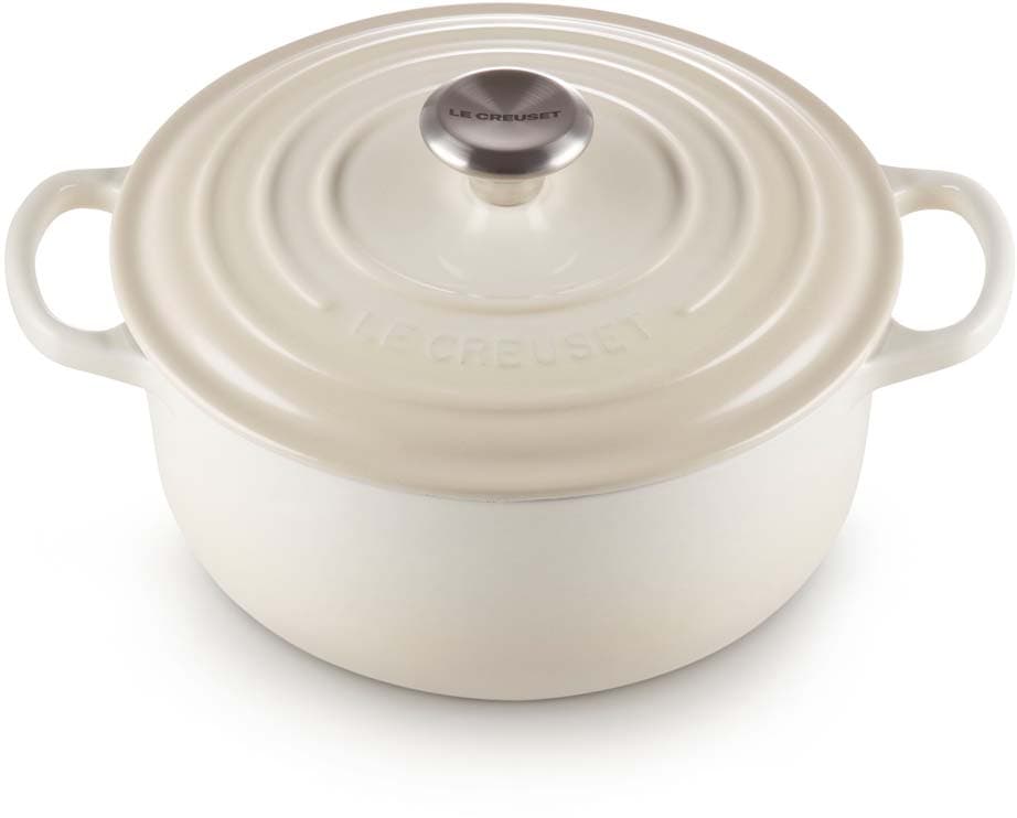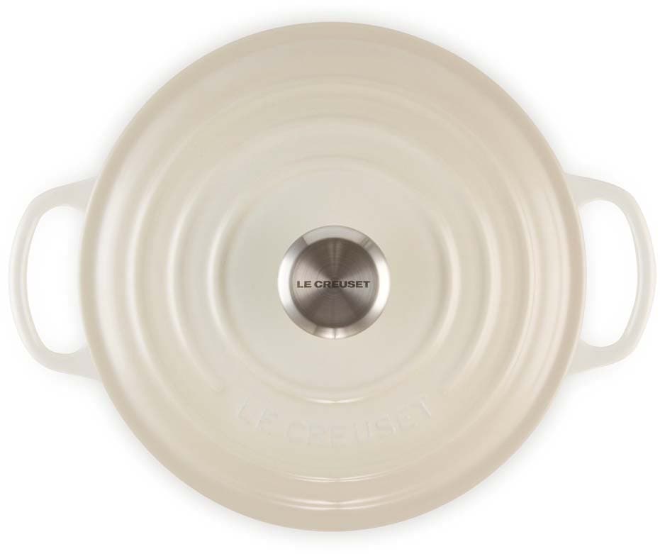 Der runde gusseiserne Bräter Signature von Le Creuset mit 22 cm Durchmesser eignet sich ideal für eine Vielzahl von One-Pot-Rezepten – von einem schnell zubereiteten Pasta-Gericht bis zu einem langsam gekochten, aromatischen Eintopf. Er ist ebenso perfekt für zarte, saftige Braten, wie auch für frisch gebackene Brote und Kuchen.