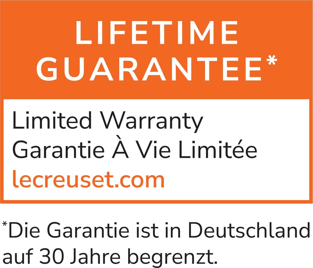 Jedes Produkt aus Gusseisen ist ein Unikat – seit 1925 handgefertigt in der Gießerei in Frankreich. Le Creuset gewährt in Deutschland auf das Gusseisensortiment eine Garantie von 30 Jahren. In Österreich und der Schweiz gilt darauf eine lebenslange Garantie.