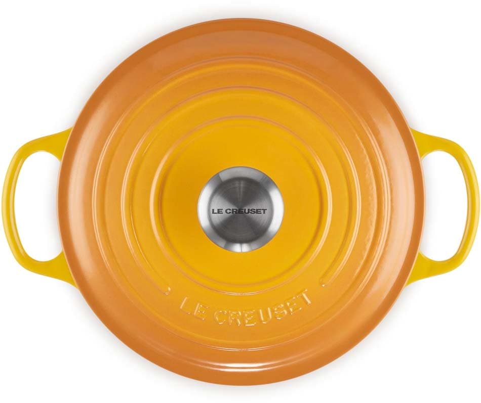 Der runde gusseiserne Bräter Signature von Le Creuset mit 24 cm Durchmesser eignet sich ideal für eine Vielzahl von One-Pot-Rezepten – von einem schnell zubereiteten Pasta-Gericht bis zu einem langsam gekochten, aromatischen Eintopf. Er ist ebenso perfekt für zarte, saftige Braten , wie auch für frisch gebackene Brote und Kuchen.