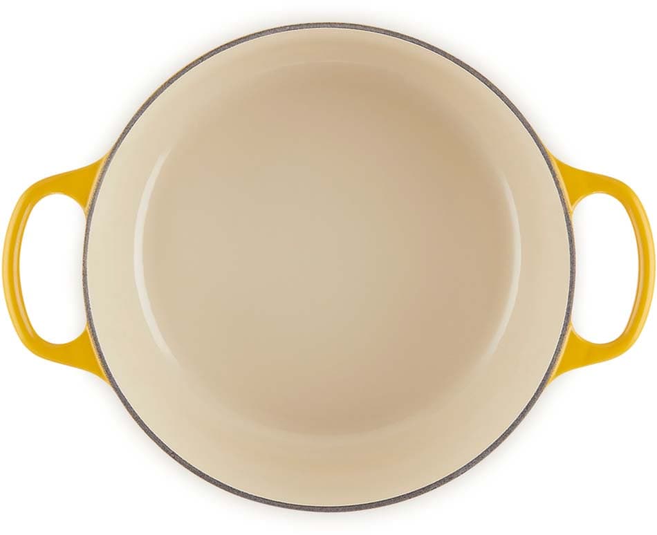 Zu den besonderen Vorzügen des Bräters gehören handliche, großzügige Griffe, eine leicht zu reinigende, langlebige und robuste Emaillierung, ein hitzebeständiger Deckelknopf aus Edelstahl und ein besonders dicht schließender Deckel. Gusseisen hält die Speisen am Tisch länger warm, sodass der Bräter auch zum Servieren geeignet ist. Jedes Produkt ist zudem mit einer farbenfrohen Emaillierung versehen, die passend zum jeweiligen Küchen- oder Einrichtungsstil gewählt werden kann und diesen wunderbar ergänzt.