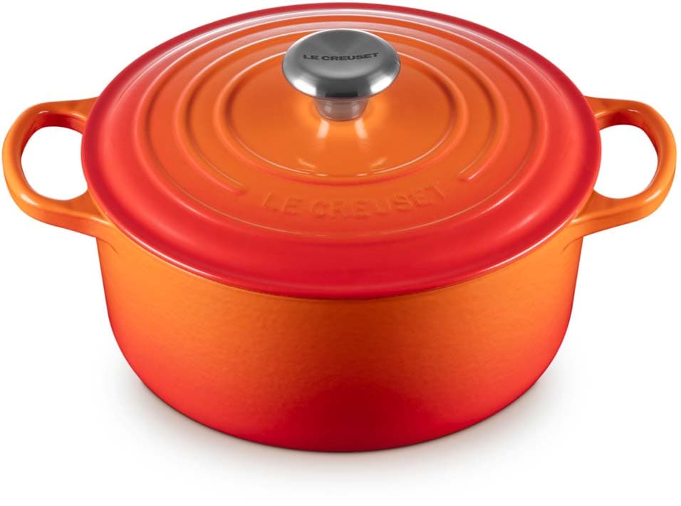 Der runde gusseiserne Bräter Signature von Le Creuset mit 24 cm Durchmesser eignet sich ideal für eine Vielzahl von One-Pot-Rezepten – von einem schnell zubereiteten Pasta-Gericht bis zu einem langsam gekochten, aromatischen Eintopf. Er ist ebenso perfekt für zarte, saftige Braten , wie auch für frisch gebackene Brote und Kuchen.
