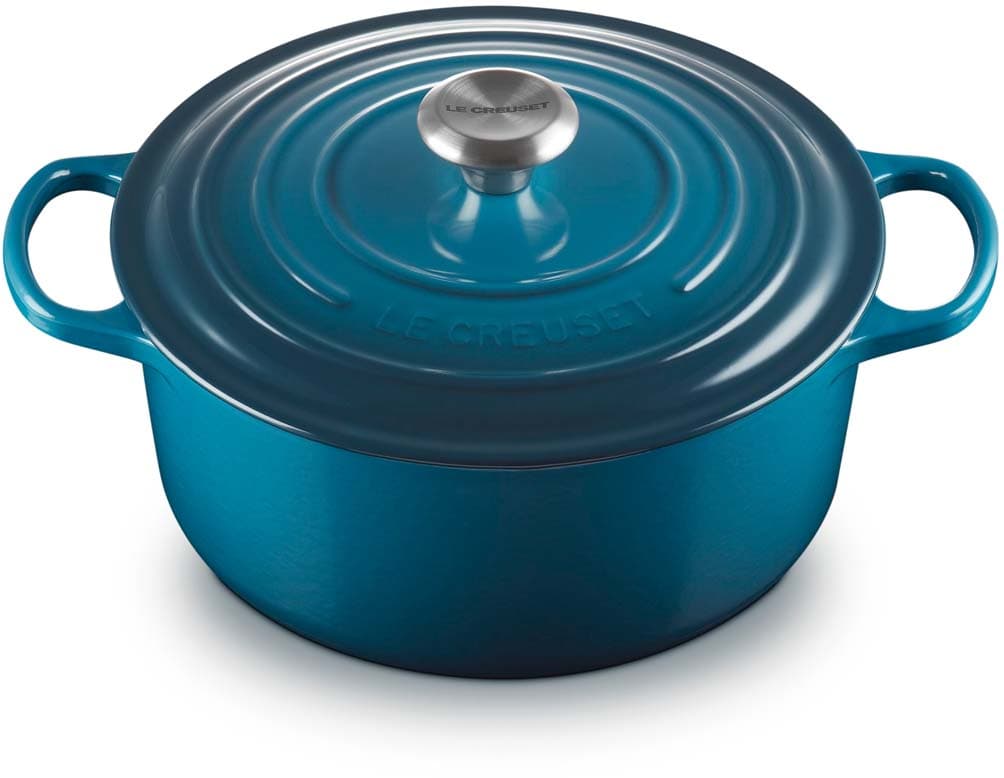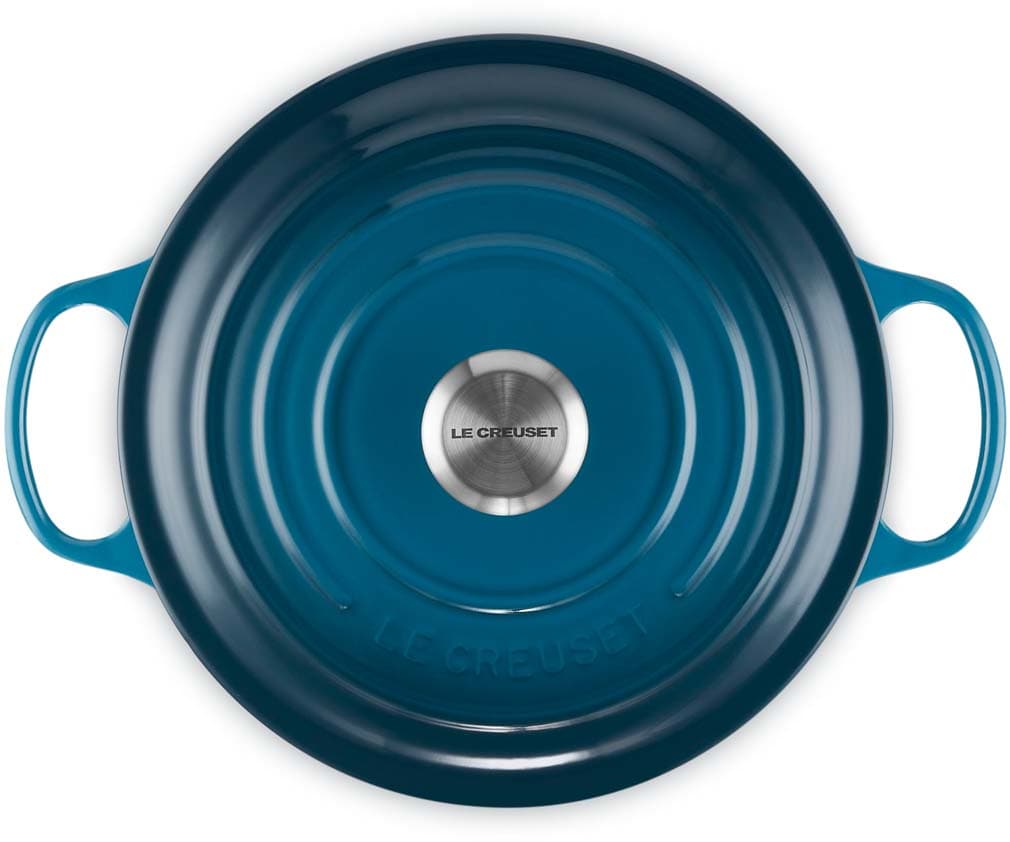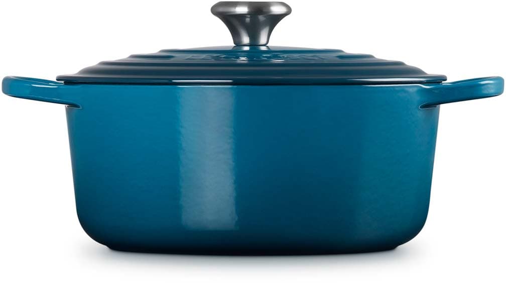 Der runde gusseiserne Bräter Signature von Le Creuset mit 26 cm Durchmesser eignet sich ideal für eine Vielzahl von One-Pot-Rezepten – von einem schnell zubereiteten Pasta-Gericht bis zu einem langsam gekochten, aromatischen Eintopf. Er ist ebenso perfekt für zarte, saftige Braten , wie auch für frisch gebackene Brote und Kuchen.