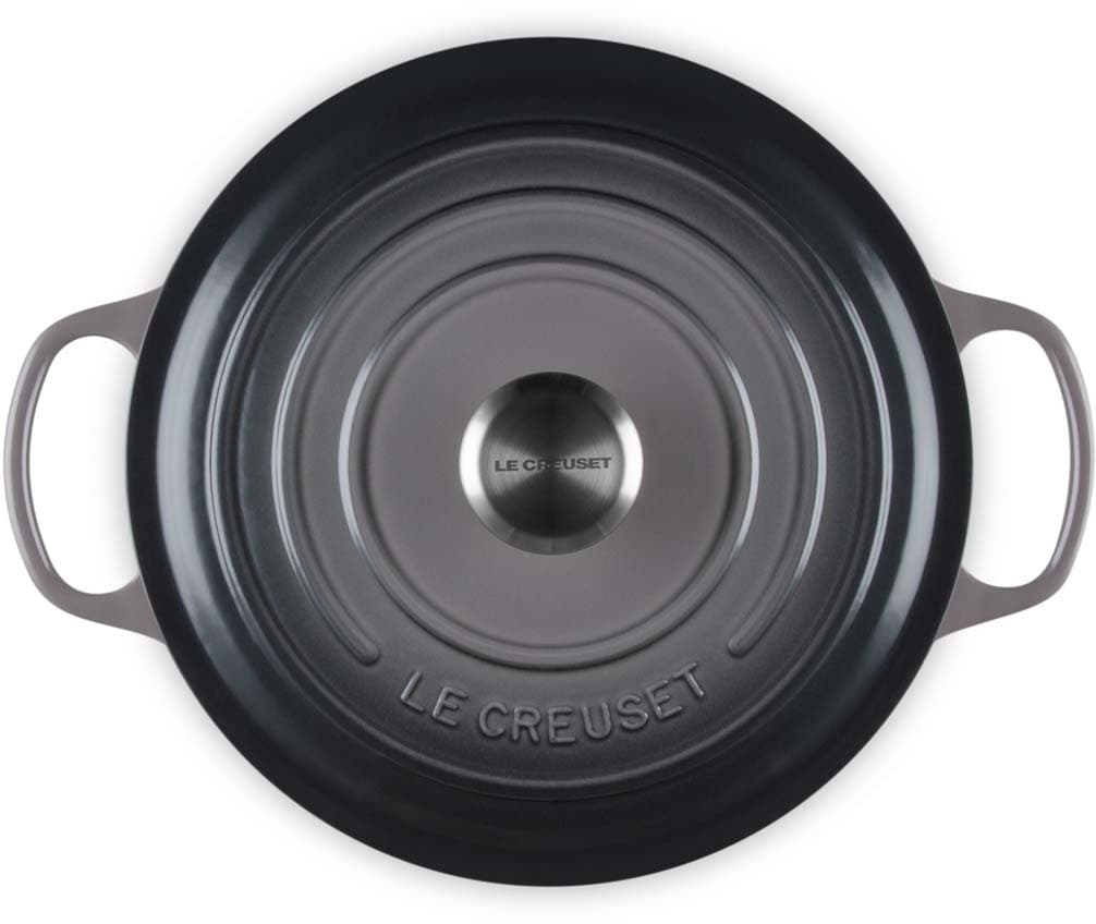 Der runde gusseiserne Bräter Signature von Le Creuset mit 26 cm Durchmesser eignet sich ideal für eine Vielzahl von One-Pot-Rezepten – von einem schnell zubereiteten Pasta-Gericht bis zu einem langsam gekochten, aromatischen Eintopf. Er ist ebenso perfekt für zarte, saftige Braten , wie auch für frisch gebackene Brote und Kuchen.