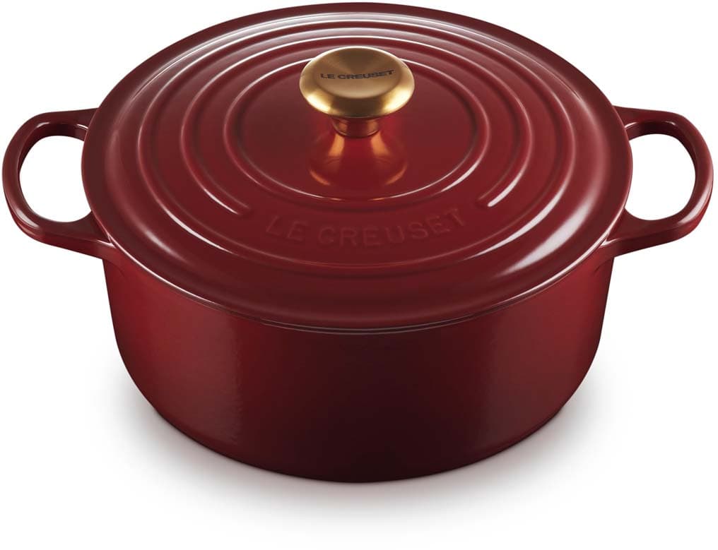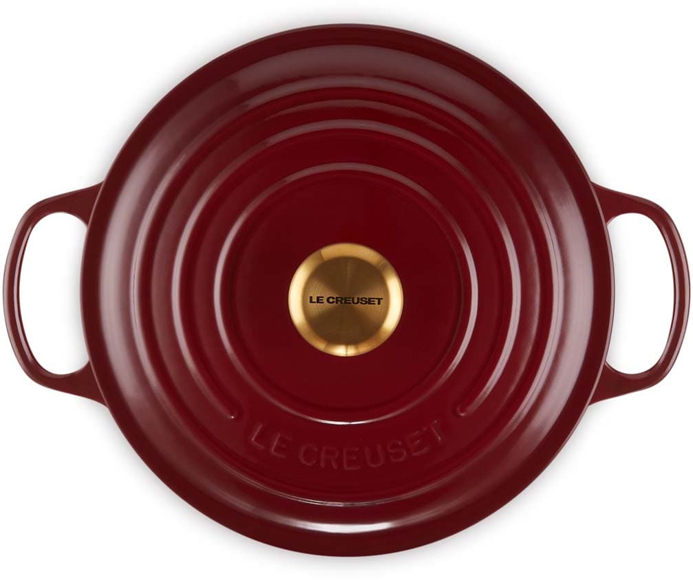 Der runde gusseiserne Bräter Signature von Le Creuset mit 26 cm Durchmesser eignet sich ideal für eine Vielzahl von One-Pot-Rezepten – von einem schnell zubereiteten Pasta-Gericht bis zu einem langsam gekochten, aromatischen Eintopf. Er ist ebenso perfekt für zarte, saftige Braten , wie auch für frisch gebackene Brote und Kuchen.