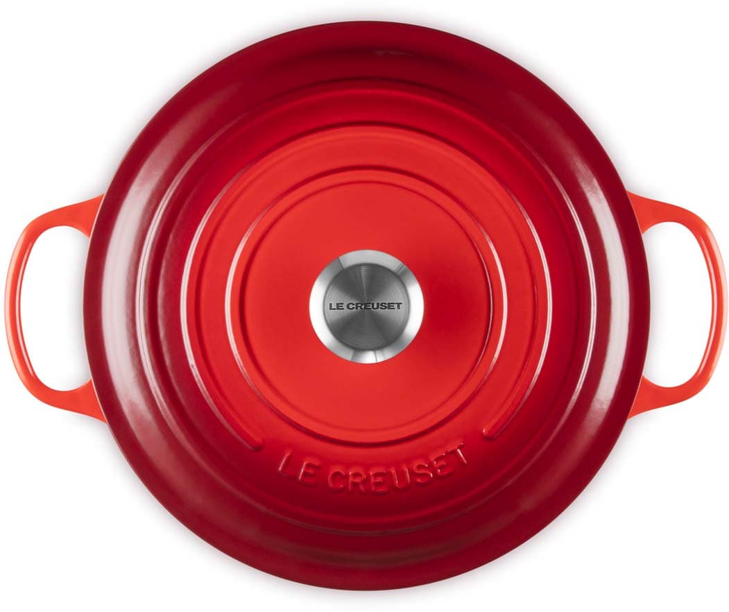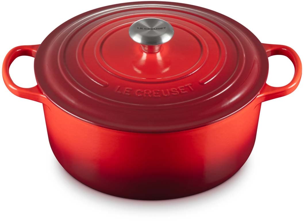 Der runde gusseiserne Bräter Signature von Le Creuset mit 28 cm Durchmesser eignet sich ideal für eine Vielzahl von One-Pot-Rezepten – von einem schnell zubereiteten Pasta-Gericht bis zu einem langsam gekochten, aromatischen Eintopf. Er ist ebenso perfekt für zarte, saftige Braten , wie auch für frisch gebackene Brote und Kuchen.