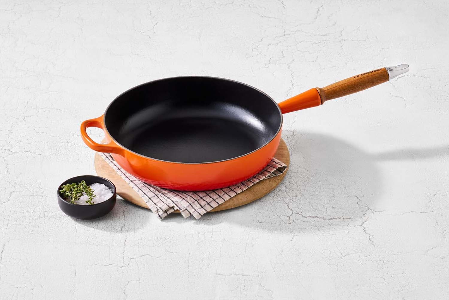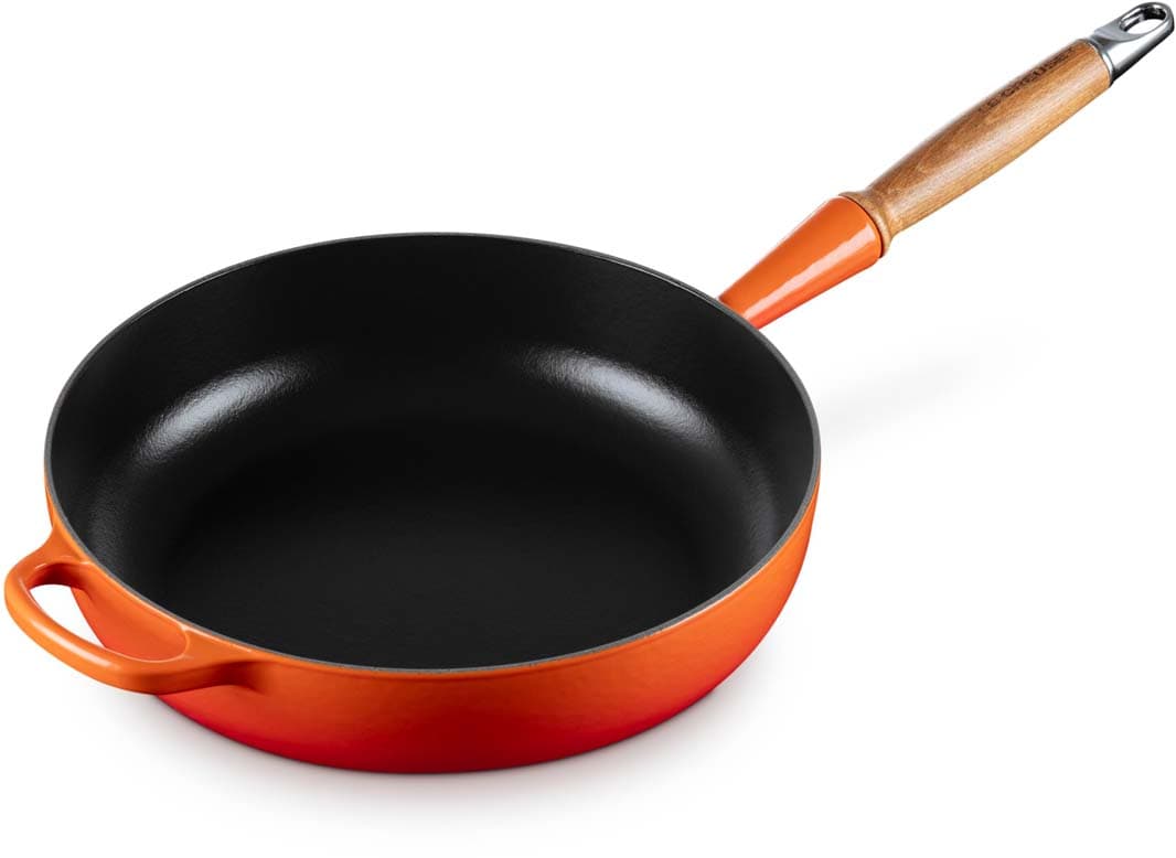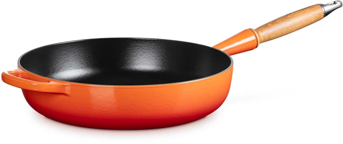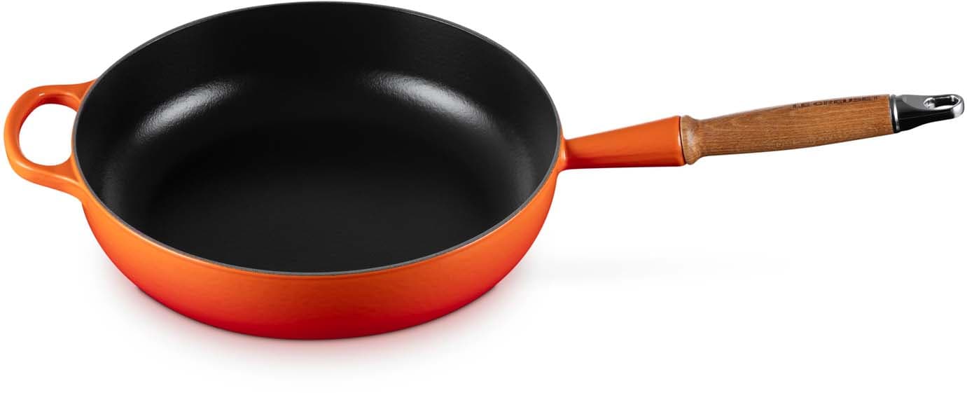 Die Sautépfanne Signature von Le Creuset mit 28 cm Durchmesser und elegantem Holzgriff ist ideal für das Braten, Schmoren und sanfte Garen von Fleisch, Gemüse oder Fisch. Dank der hohen Seitenwände eignet sich die Pfanne perfekt für Gerichte mit Sauce oder Flüssigkeit, während die große Bratfläche für eine gleichmäßige Hitze sorgt. Der ergonomische Holzgriff liegt angenehm in der Hand und verleiht der Pfanne einen natürlichen, stilvollen Look. Ob für klassische Schmorgerichte oder kreative Eigenkreationen – diese Sautépfanne ist ein vielseitiger Helfer in jeder Küche.