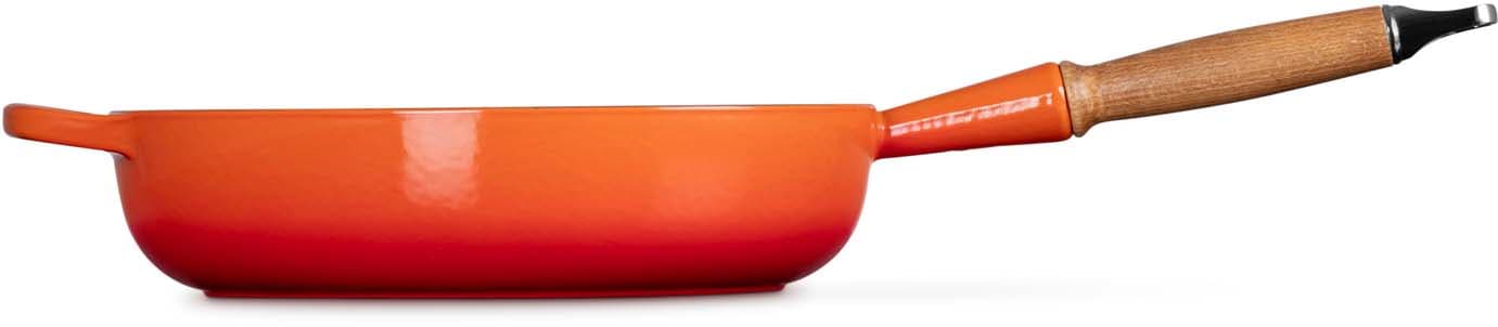 Die Sautépfanne verfügt über einen ergonomischen Holzgriff, der ein sicheres und komfortables Handling ermöglicht. Die robuste und langlebige Emaillierung sorgt für eine einfache Reinigung und schützt das Gusseisen vor Abnutzung. Das Material gewährleistet eine gleichmäßige Wärmeverteilung, sodass Speisen optimal gegart werden. Die farbenfrohe Emaillierung ergänzt jeden Küchenstil und macht die Pfanne zu einem echten Blickfang.