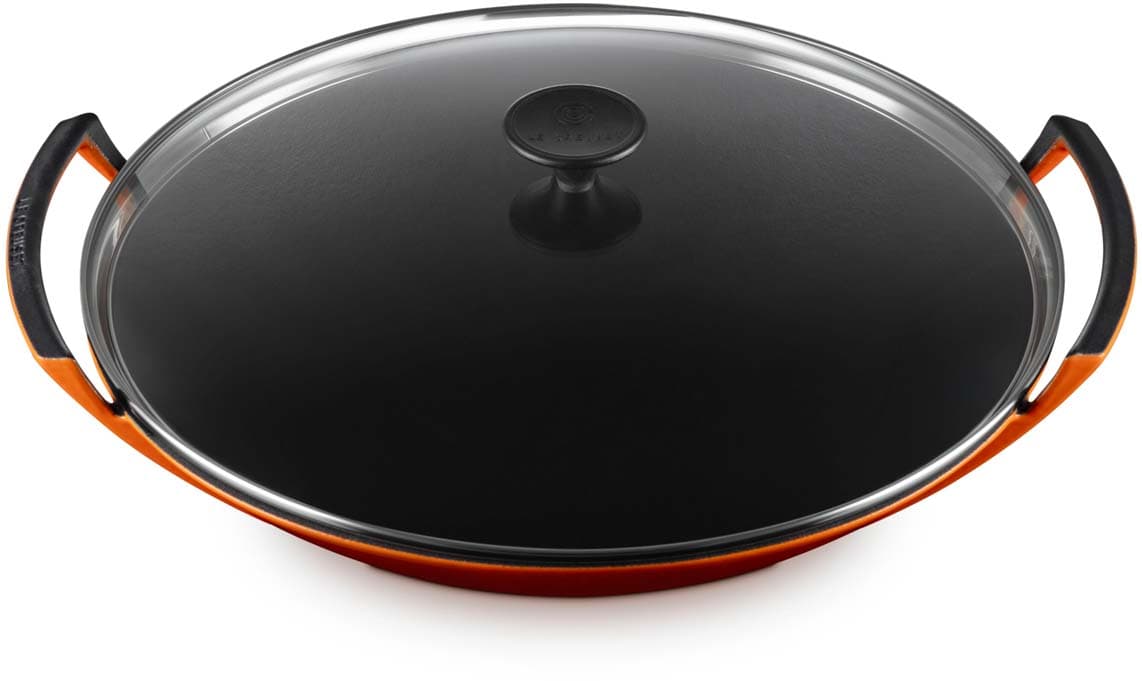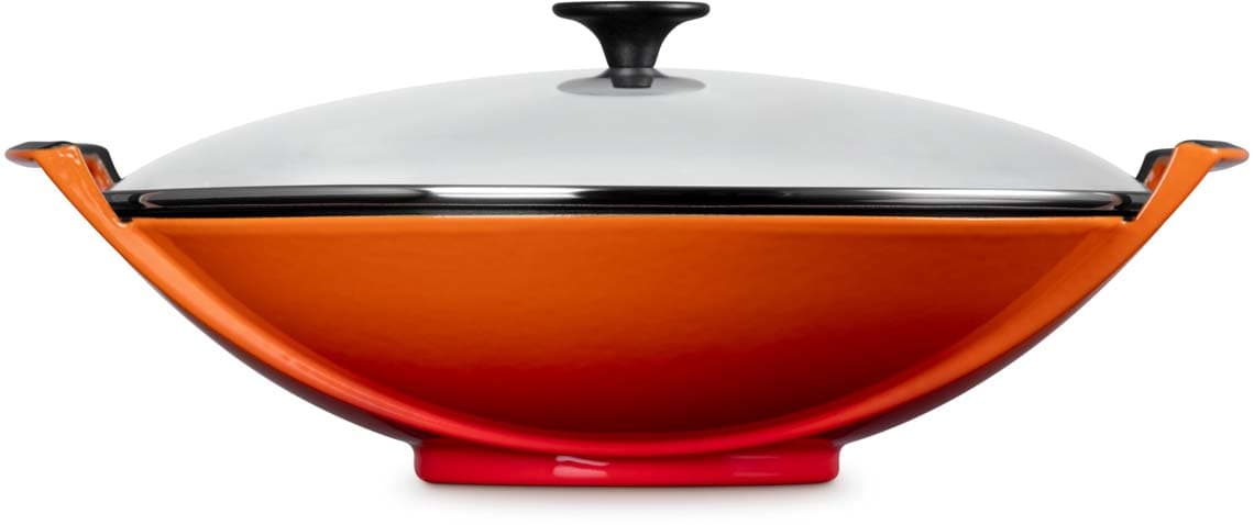 Der Wok von Le Creuset mit 36 cm Durchmesser und passendem Glasdeckel ist ideal für die Zubereitung von Wok-Gerichten, Pfannengerührtem und knackigem Gemüse. Die große, gewölbte Form sorgt für eine optimale Hitzeverteilung und ermöglicht das schnelle Anbraten bei hoher Temperatur. Der Glasdeckel erlaubt es, den Garprozess jederzeit im Blick zu behalten, ohne die Hitze entweichen zu lassen. Ganz gleich, ob bewährte Rezepte oder neue Inspirationen – dieser Wok bringt Vielfalt in Ihre Küche.