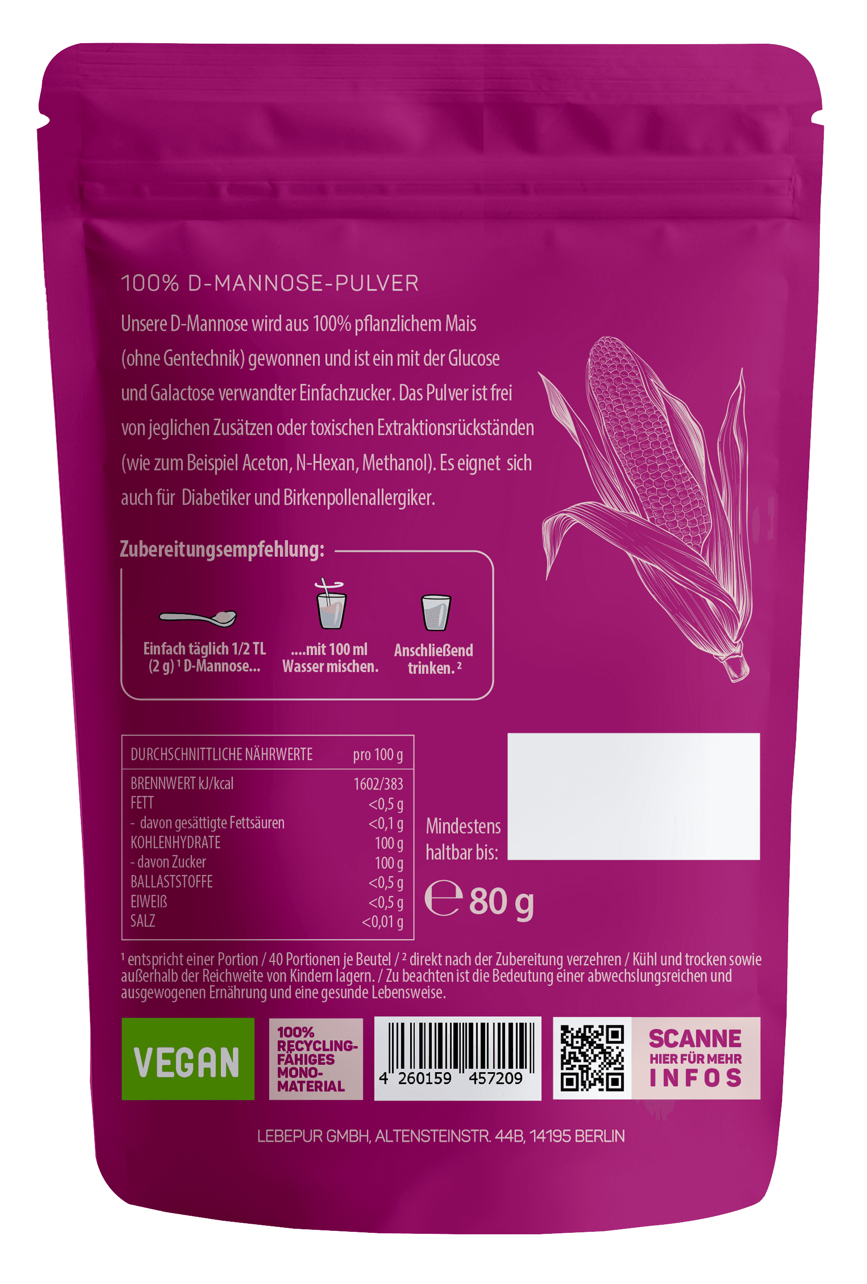 Nahrungsergänzungsmittel: 100% D-Mannose-Pulver.