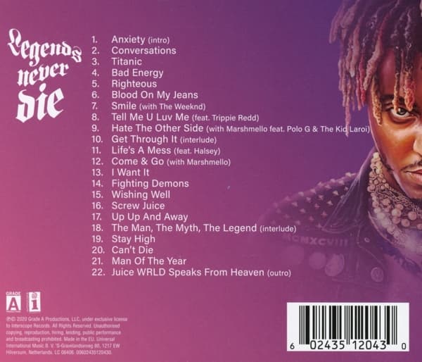 | 18 | Juice WRLD / Juice WRLD | The Man, The Myth, The Legend (Interlude) | 00:02:17 | |