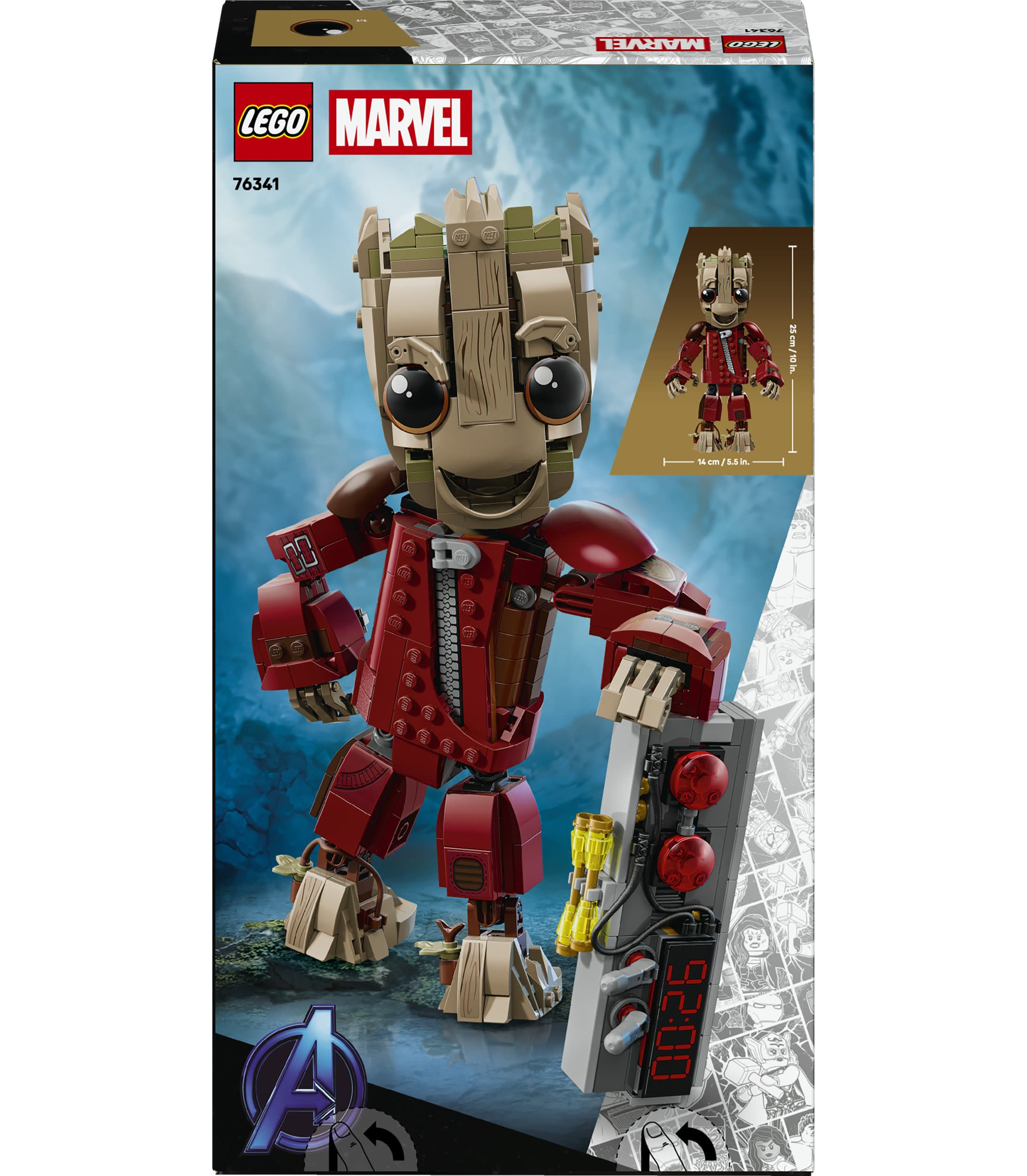 Dieses LEGO ǀ Marvel Set zum Sammeln beinhaltet Groot im Ravager-Outfit, das er in Guardians of the Galaxy Vol. 2 von den Marvel Studios getragen hat. Die baubare Figur hat einen Sprengsatz mit 2 Knöpfen und 2 beweglichen Hebeln, der auf eine legendäre Szene aus dem Film anspielt. Dank der Gelenke an Schultern, Armen, Fingern, Hüfte, Füßen, Beinen und Hals ist Groot äußerst beweglich. Und verstellbare Augenbrauen verleihen ihm im Nu einen anderen Gesichtsausdruck. Dieses LEGO ǀ Marvel Bauset ist ein tolles Geburtstagsgeschenk. Und die LEGO Builder App mit verständlichen digitalen Bauanleitungen lässt Kinder selbstbewusst bauen, 3D-Modellansichten vergrößern und drehen und den Baufortschritt verfolgen. Das Bauset besteht aus 604 Teilen.