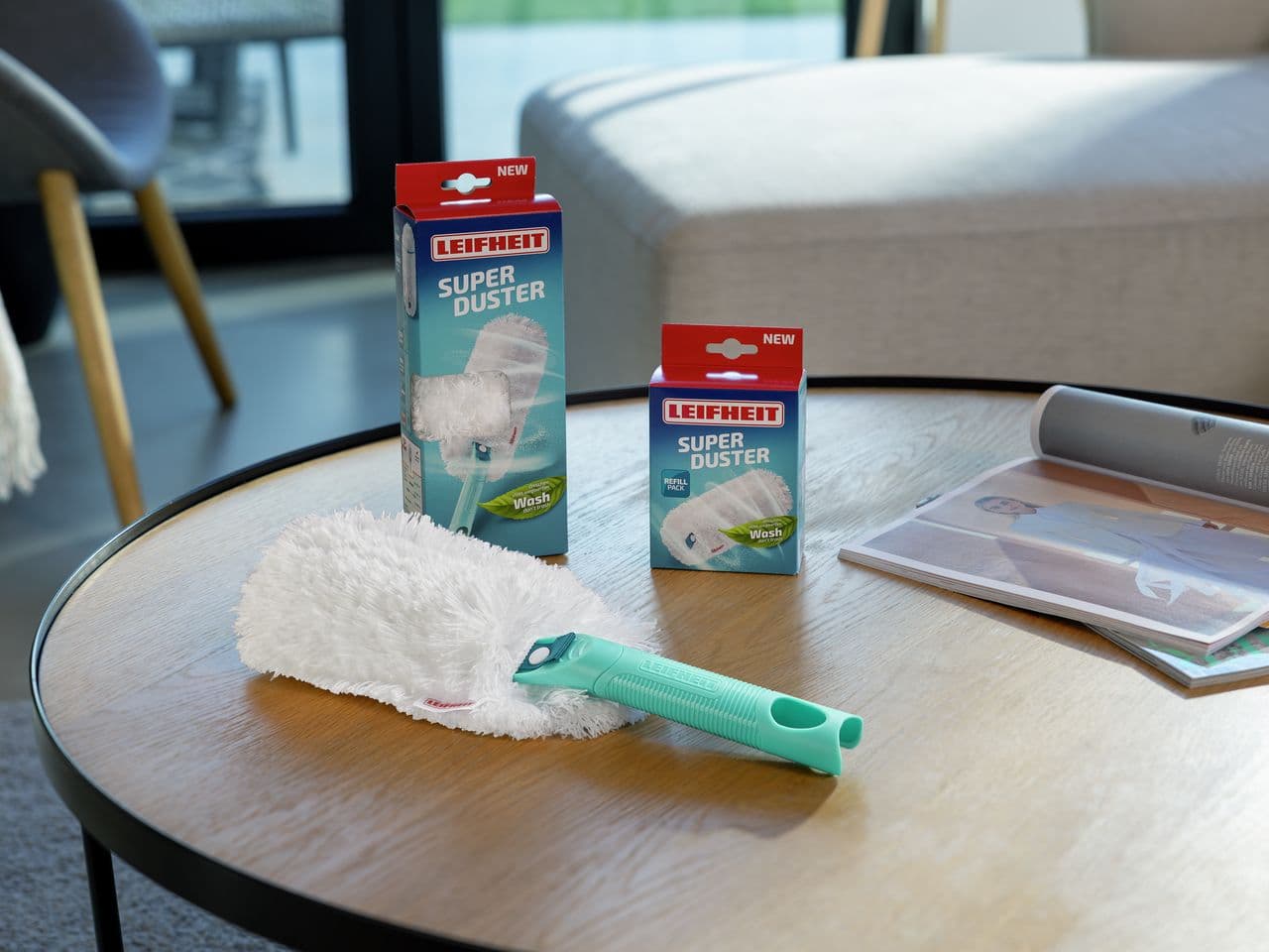 Tschüss Staub, hallo Wohlfühlzuhause! Der SUPERDUSTER ist deine neue Superkraft gegen Staub – ganz ohne Aufwirbeln. Dank seinem 360°-Mikrofaser-Bezug nimmt er alles auf, was sich in Ecken, Ritzen oder auf Regalen versteckt: Staub, Haare und sogar Allergene. Somit ist er gleich dreifach super gegen Staub! Zudem wagt sich der SUPERDUSTER in jedes Terrain, denn dank seiner Flex Zone erreicht er jede Nische auch, ohne dass du erst Bücher, Pflanzen oder Bilder verrücken musst. Und wie geht es weiter nach seinem kleinen Heldeneinsatz für dein Zuhause? Einfach waschen statt wegwerfen! Sein Bezug ist maschinenwaschbar und kann bis zu 50-mal wiederverwendet werden – das spart Müll und Geld in einem und macht den SUPERDUSTER auch supernachhaltig! Der ergonomische Griff aus 96 % Recycling-Kunststoff sorgt für angenehmen Halt und mit Click-System kann dein SUPERDUSTER dir selbst in den Höhenlagen deines Zuhauses tapfer zur Seite stehen. Kein Wunder, dass er von über 90 % unserer Kunden weiterempfohlen wird* – weil Sauberkeit auch nachhaltig geht. (*Von Leifheit über das ipi Institute für Produkt-Markt-Forschung GmbH durchgeführte Befragung von 100 Kunden, ob sie den „SUPERDUSTER“ weiterempfehlen würden, 2024)