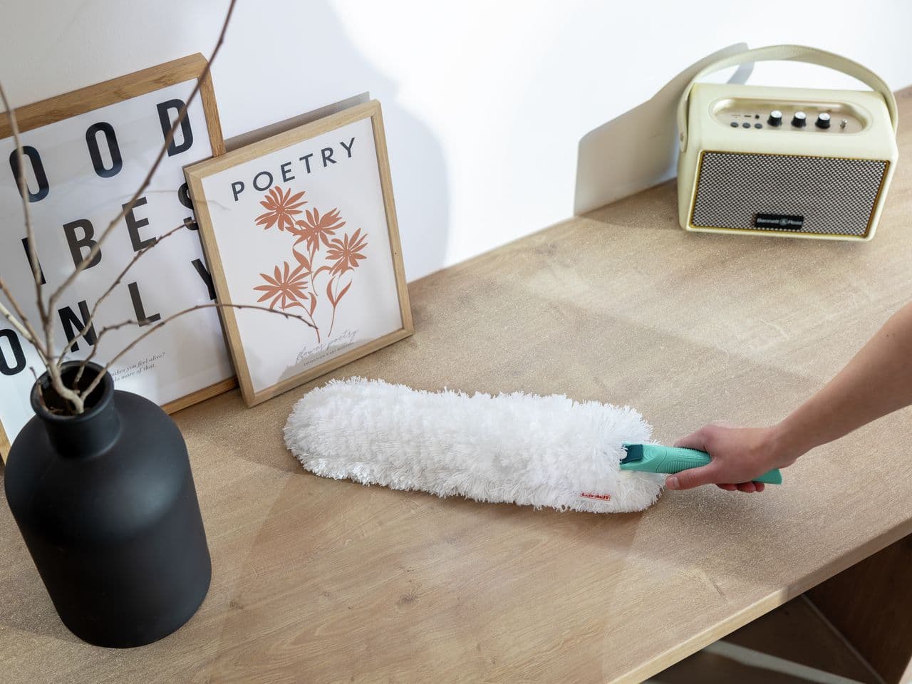 Durch die Kombination aus breiter und schmaler Reinigungsfläche kommt der SUPERDUSTER XL mühelos in jede Ecke – ob Regal, Heizkörper oder Zwischenraum. Der ergonomisch geformte Griff besteht außerdem zu 96 % aus Recycling-Kunststoff und liegt angenehm in der Hand. Praktisch wird’s auch bei der Reinigung in luftiger Höhe: Der SUPERDUSTER XL ist mit dem bewährten Leifheit Click-System kompatibel. Einfach einen Teleskopstiel aus dem System einklicken – und schon werden auch Schränke, Lampen oder hohe Regale bequem und sicher sauber, ganz ohne Hocker oder Leiter. Und wer ihn einmal ausprobiert hat, möchte ihn am liebsten nicht mehr hergeben, deshalb empfehlen über 90 % unserer Kunden ihn weiter*. Überzeuge dich selbst von deiner neuen Superkraft gegen Staub. (*Von Leifheit über das ipi Institute für Produkt-Markt-Forschung GmbH durchgeführte Befragung von 100 Kunden, ob sie den „SUPERDUSTER“ weiterempfehlen würden, 2024).