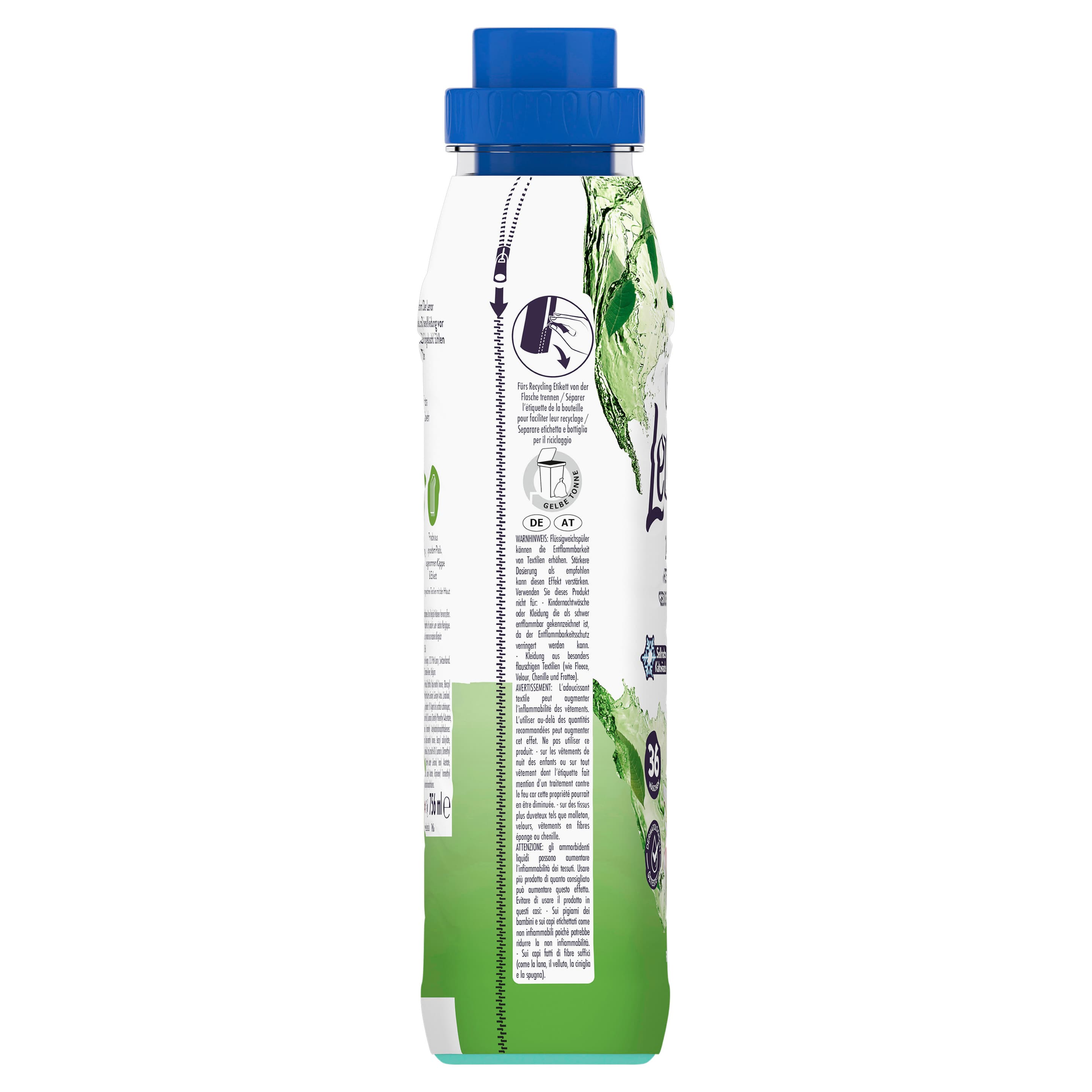 | Inhaltsstoffe | <5% Kationische Tenside, Duftstoffe, Alpha-Isomethyl Ionone, Benzyl Salicylate, Citronellol, Citrus Limon Peel Oil, Coumarin, Dimethyl Phenethyl Acetate, Geraniol, Geranyl Acetate, Linalool, Linalyl Acetate, Terpineol, Tetramethyl Acetyloctahydronaphthalenes |