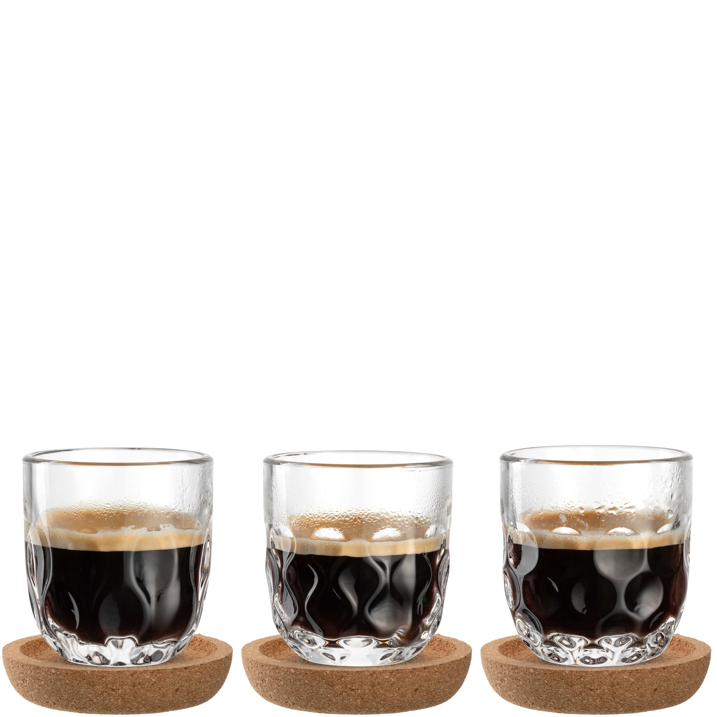 Genieße deinen Espresso auf stilvolle Art mit dem Espressoglas-Set GOCCE! Die weichen, harmonischen Formen und das elegante Tropfenrelief machen jeden Schluck zu einem Erlebnis. In diesem Set bekommst du drei Gläser in verschiedenen Tropfendesigns, die deinen Tisch mit abwechslungsreichen Akzenten bereichern. Zusätzlich sorgen die drei mitgelieferten Korkuntersetzer für sicheren Halt und schützen deine Oberflächen. Das Set ist ideal für Espresso-Liebhaber, die ihren Kaffeegenuss mit einem Hauch von Eleganz verfeinern möchten. Hol dir GOCCE und genieße deinen Kaffee mit dem perfekten Zusammenspiel aus Design, Funktionalität und italienischem Flair.