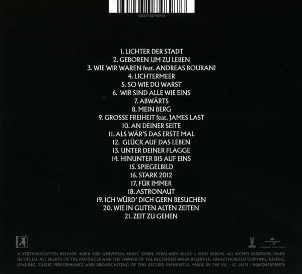 | 21 | | Unheilig | Zeit zu gehen | 00:04:14 |