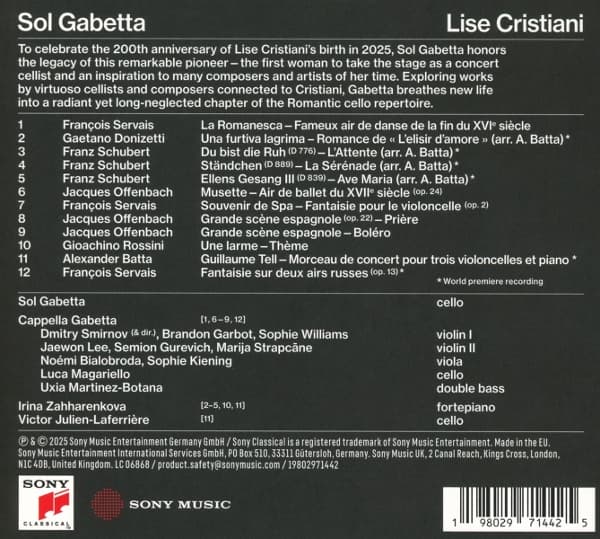 | 11 | | Gabetta, Sol/Zahharenkova, Irina/Capella Gabetta | Fantaisie sur des motifs de l'opera 'Guillaume Tell' de Rossini (Arr. for 3 Cellos) | 00:10:45 |