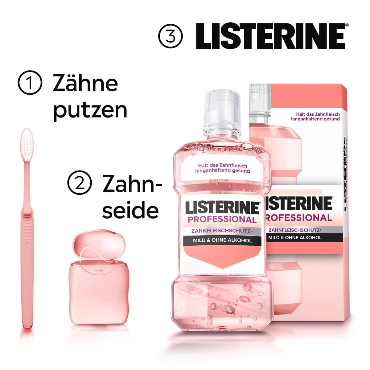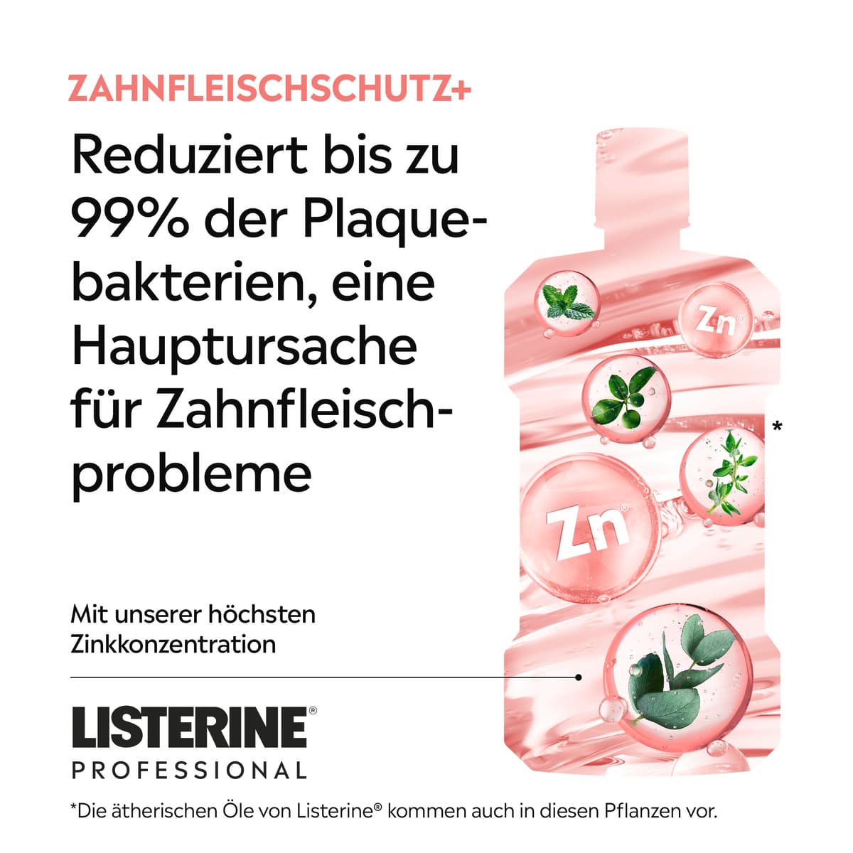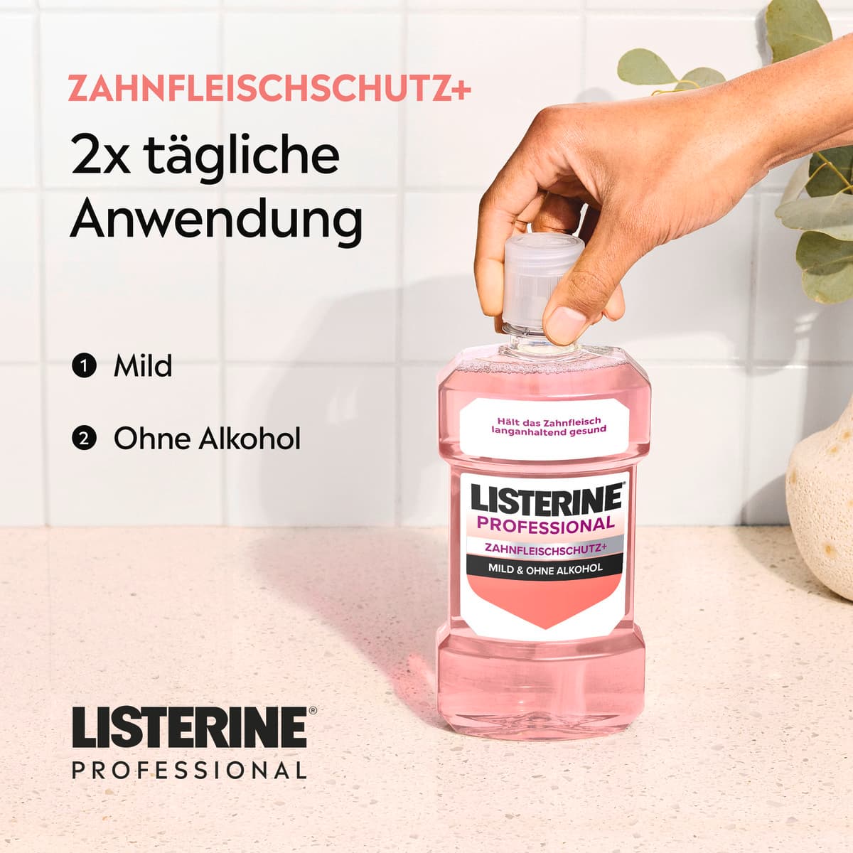 • IN NUR 1 WOCHE EFFEKTIVER ZAHNFLEISCHSCHUTZ*: LISTERINE Professional Zahnfleischschutz+ Mundspülung hält das Zahnfleisch langanhaltend gesund und bietet in nur 1 Woche effektiven Zahnfleischschutz* *im Vergleich zu Zähneputzen allein.