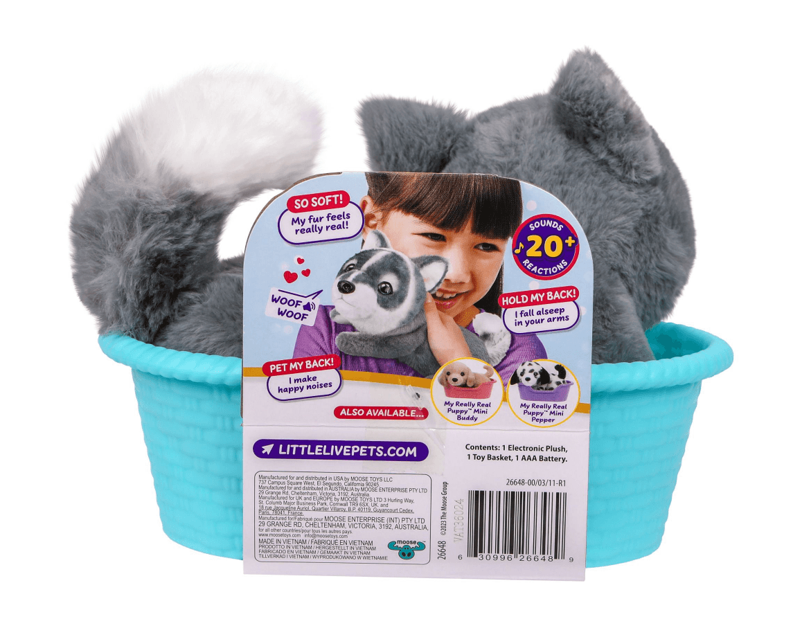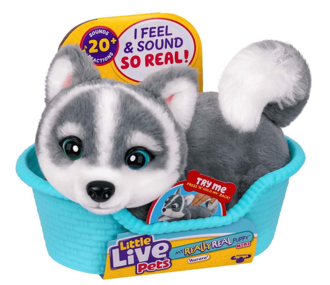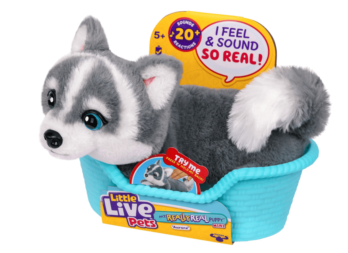 Little Live Pets – My Really Real Mini Puppy Aurora ist der perfekte Begleiter für kleine Tierliebhaber! Aurora sieht nicht nur aus wie ein echter Welpe, sondern fühlt sich auch so an – mit weichem Fell, süßen Geräuschen und realistischen Reaktionen. Dieses interaktive Spielzeug reagiert auf Berührungen, macht über 60 verschiedene Geräusche und bringt Kindern ab 4 Jahren spielerisch Verantwortung und Fürsorge näher.
