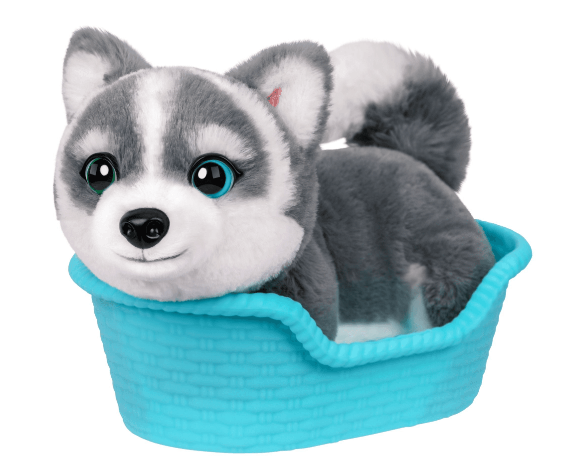 Aurora kommt mit einem eigenen Fläschchen und liebt es, gefüttert und gekuschelt zu werden. Dank der integrierten Sensoren reagiert sie auf Streicheleinheiten und zeigt Emotionen – fast wie ein echter Hund! Mit dem mitgelieferten Tragekörbchen kann Aurora überallhin mitgenommen werden. Ein ideales Geschenk für Kinder, die sich ein Haustier wünschen!