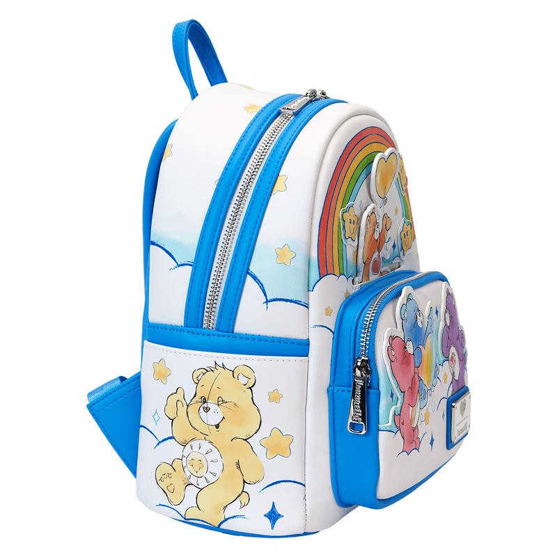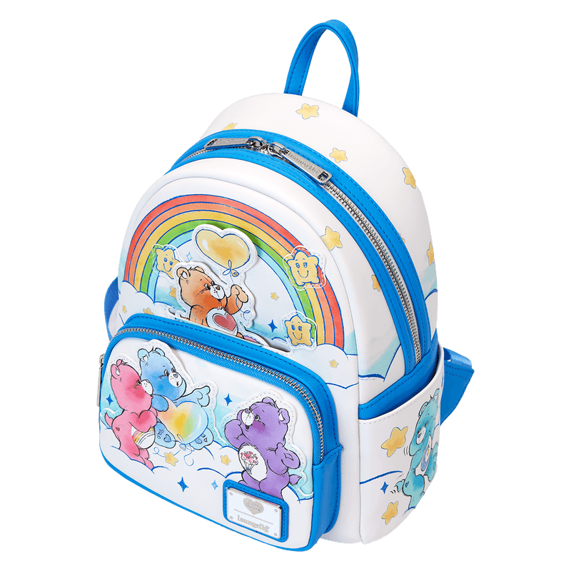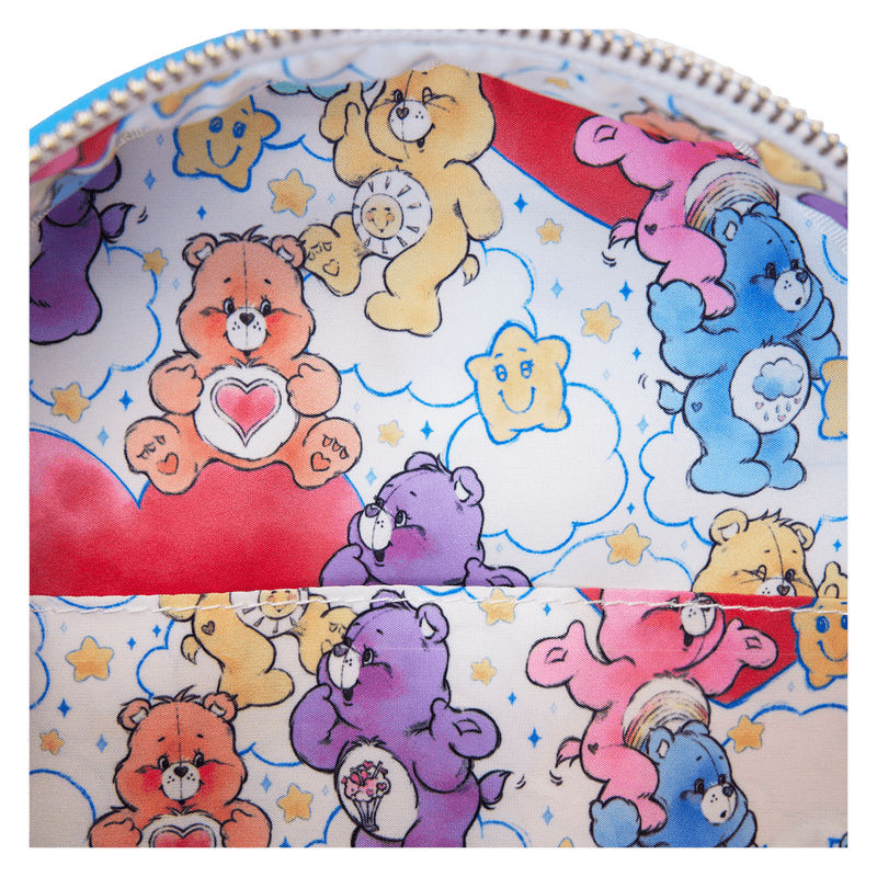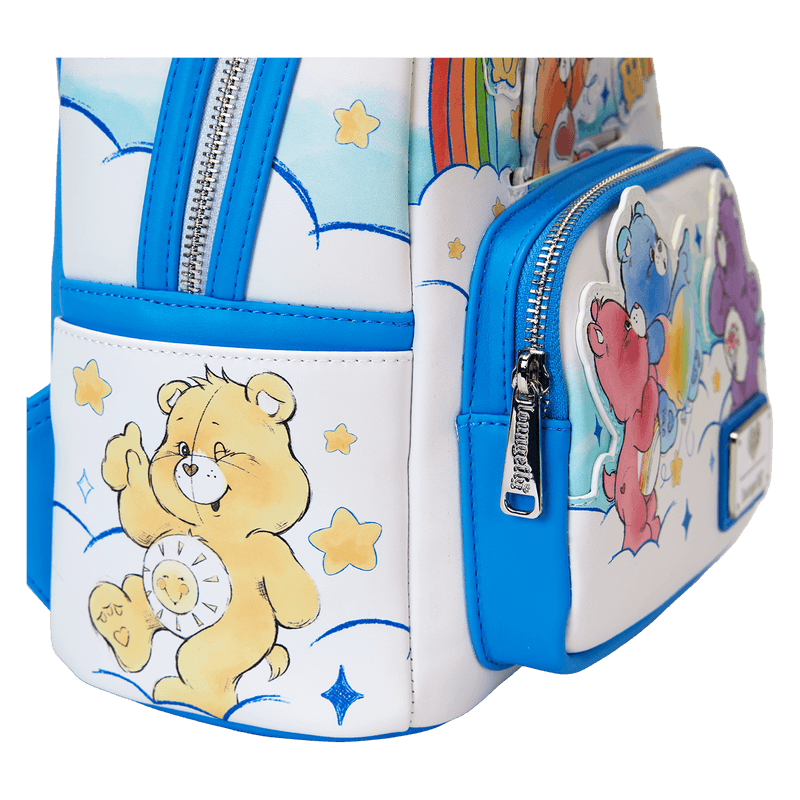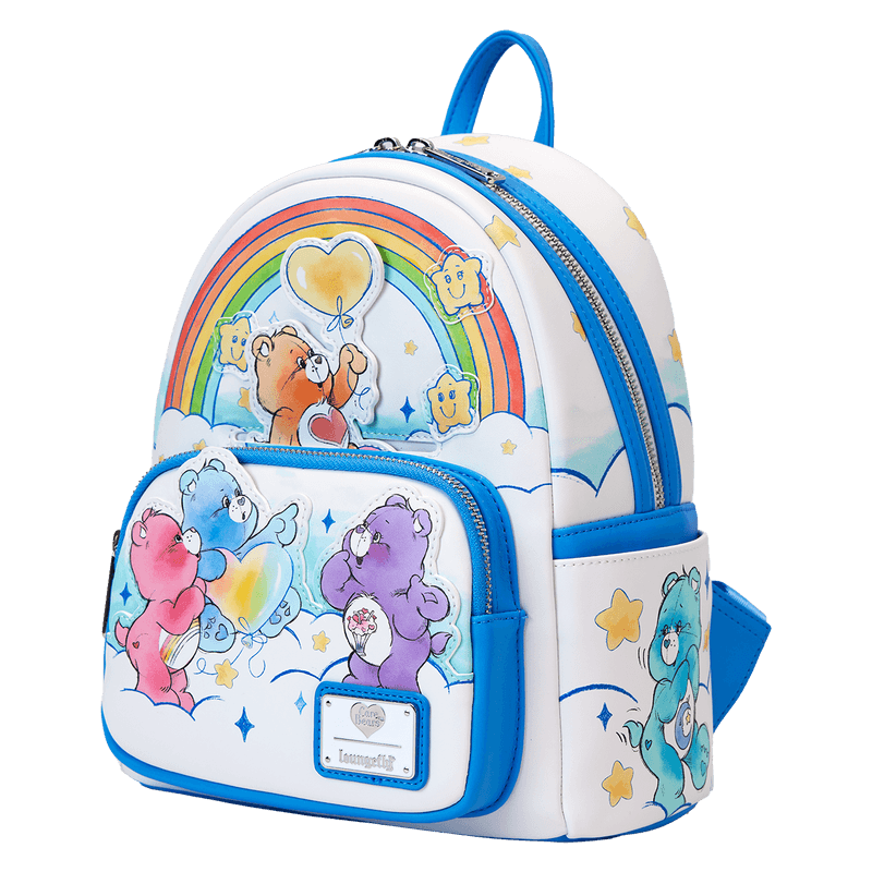Bereiten Sie sich darauf vor, zu staunen! Dieser Care Bears™-Rucksack wurde sorgfältig entworfen, um so viel Freude zu bereiten. Auf der Vordertasche sind drei Care Bears appliziert, die auf flauschigen, bedruckten Wolken stehen. Sie zeigen nach oben, wo ein Regenbogen und applizierte Sterne zu sehen sind, und direkt hinter der Reißverschlusstasche befindet sich ein applizierter herzförmiger Luftballon. Wenn du daran ziehst, erhebt sich Tenderheart Bear™ und hält den Ballon. Pack genau das ein, was du für den Tag brauchst, um deine Freunde zu versammeln und Freundlichkeit zu verbreiten, wo immer du hingehst.