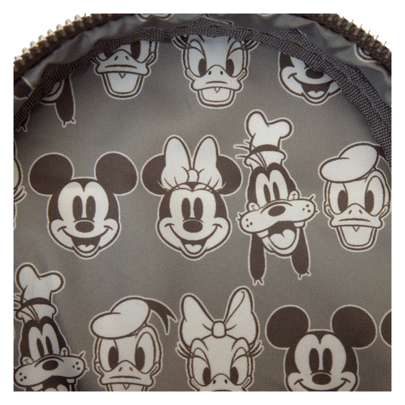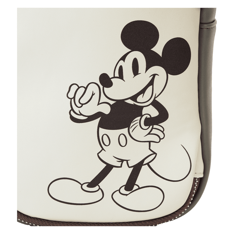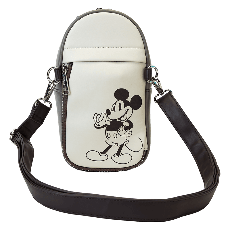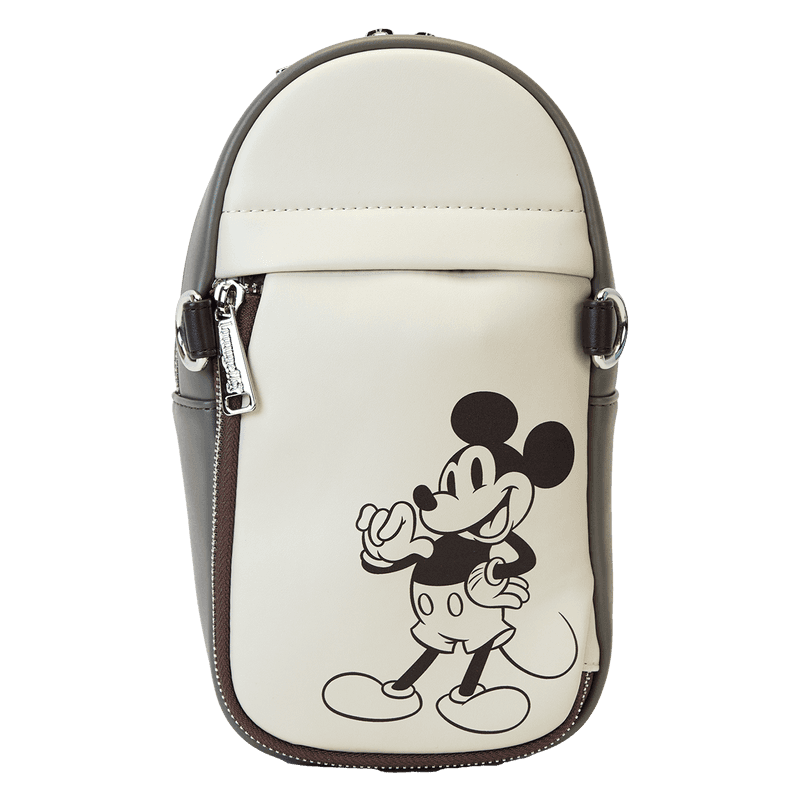 Nimm die besten Freunde mit, wohin du auch gehst. Diese Umhängetasche von Disney's Mickey Mouse and Friends ist wirklich klasse! Und sie eignet sich hervorragend für eine Wasserflasche und andere Dinge. Der abnehmbare und verstellbare Riemen bietet dir unterwegs die Möglichkeit, die Hände frei zu haben. Eine Tasche auf der Vorderseite aus Segeltuch ziert das Gesicht von Disneys Mickey Mouse, das mit goldglänzendem Garn aufgestickt ist. Dreht man die Tasche um, findet man ein klassisches Schwarz-Weiß-Mickey-Motiv. Darin kannst du genau das verstauen, was du brauchst, um stilvoll zu Abenteuern aufzubrechen.