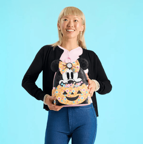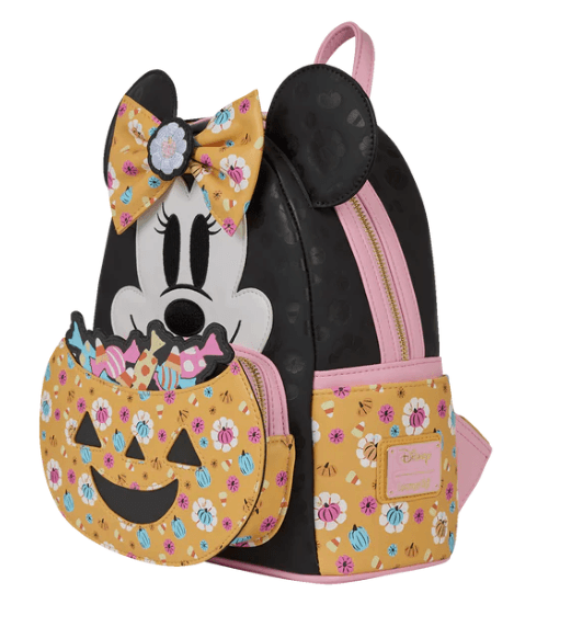 Der Minnie Mouse Candy Pumpkin Mini Backpack von Loungefly ist das perfekte Accessoire für alle, die Halloween lieben – mit einem süßen Twist! Minnie Mouse versteckt sich hinter einer kürbisförmigen Bonbonschale, die gleichzeitig als Fronttasche dient. Das Design ist mit Candy Corn, Kürbissen und einem leuchtenden Glow-in-the-Dark-Effekt versehen – und als besonderes Highlight: Die Tasche duftet nach Candy Corn!