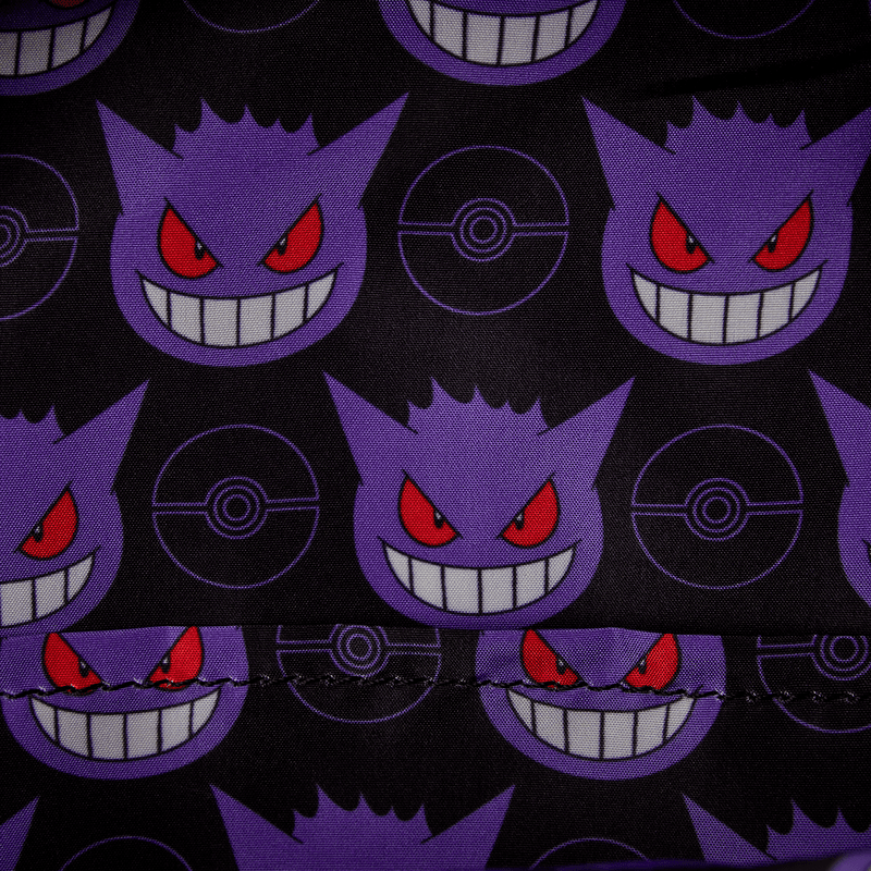 This mini backpack features an applique of Gengar on the front pocket – turn the lights out to see Gengar's outline glow in the dark! All over the rest of the bag, find more illustrations of Gengar.