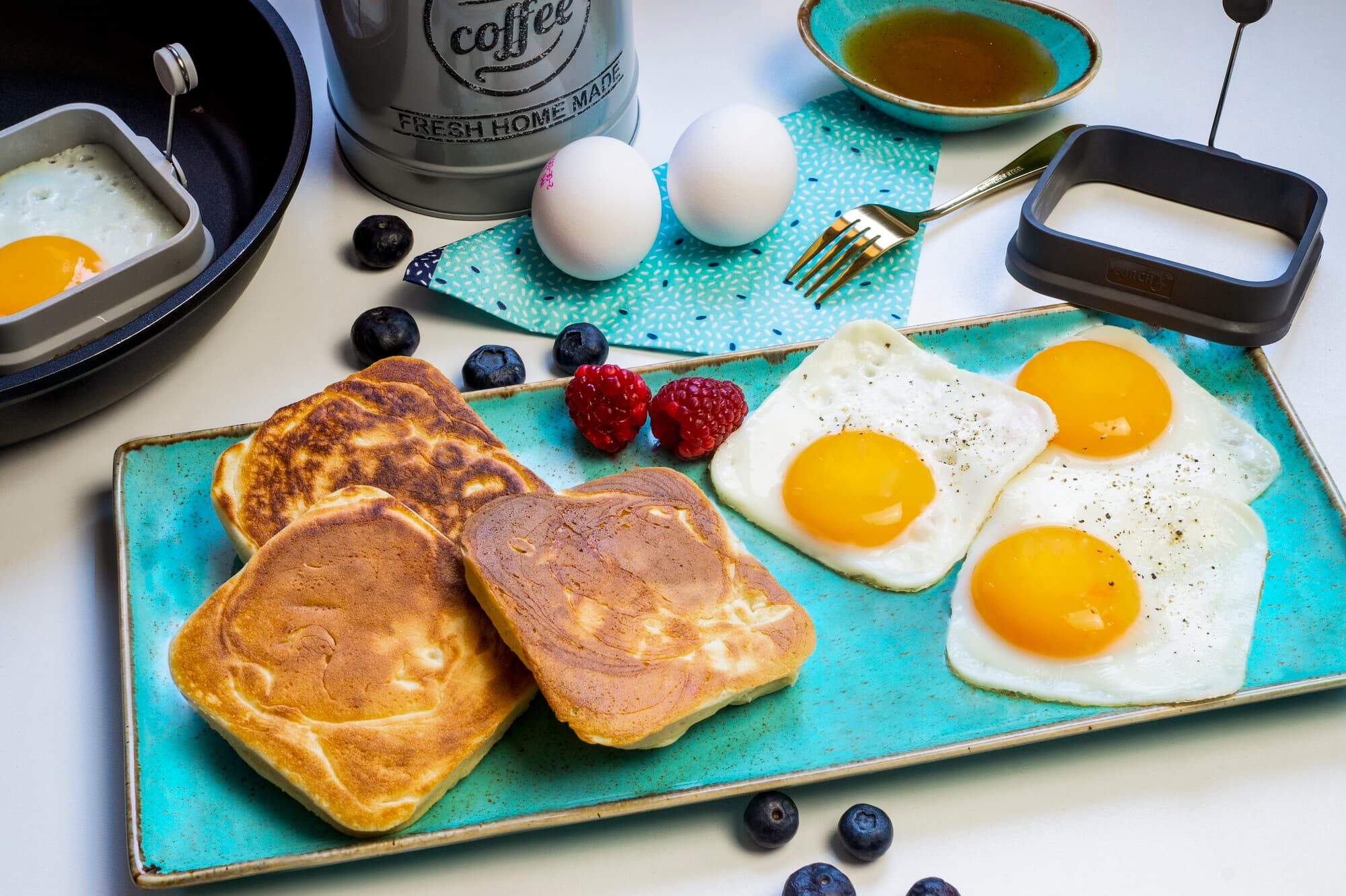 • 2er Set Spiegeleiformer Quadrat zum Braten von quadratischen Spiegeleiern (ca. 9,5 x 9,5cm).
