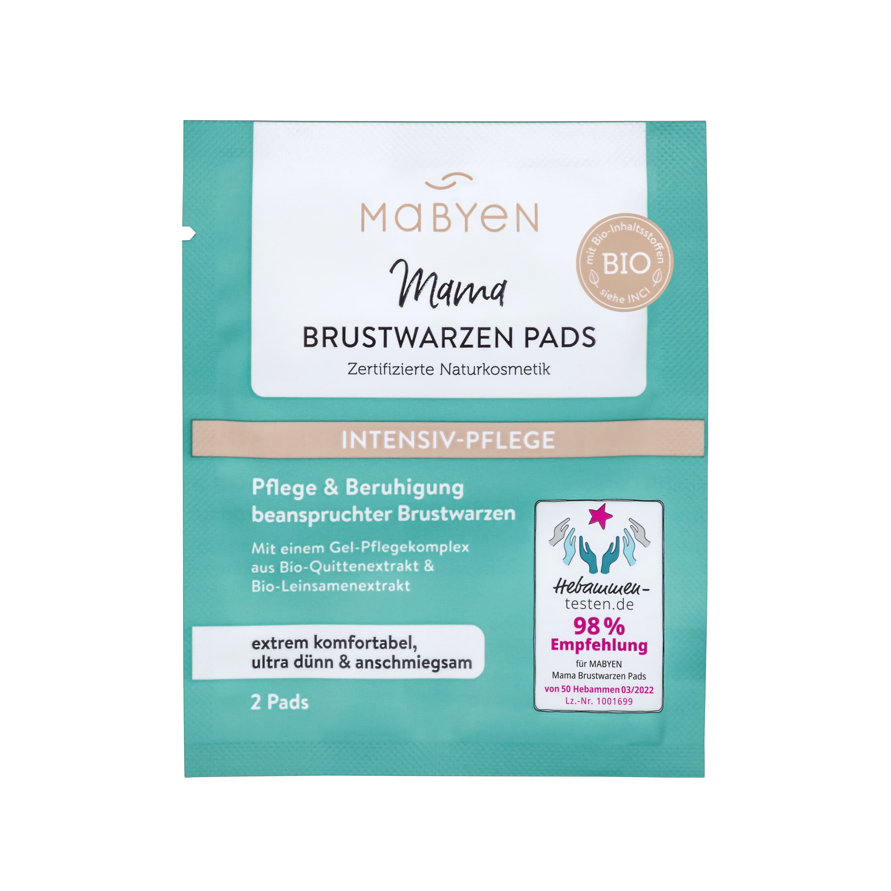 Die parfümfreien MABYEN Mama Brustwarzen Pads enthalten einen wertvollen Gel-Pflegekomplex aus Bio-Quittenextrakt und Bio-Leinsamenextrakt. Vom Stillen beanspruchte Brustwarzen werden so intensiv gepflegt, beruhigt und mit Feuchtigkeit versorgt. Das naturbasierte, weiche Material der Pads schmiegt sich dabei sanft an die Form der Brustwarzen an. Hautverträglichkeit dermatologisch bestätigt.
