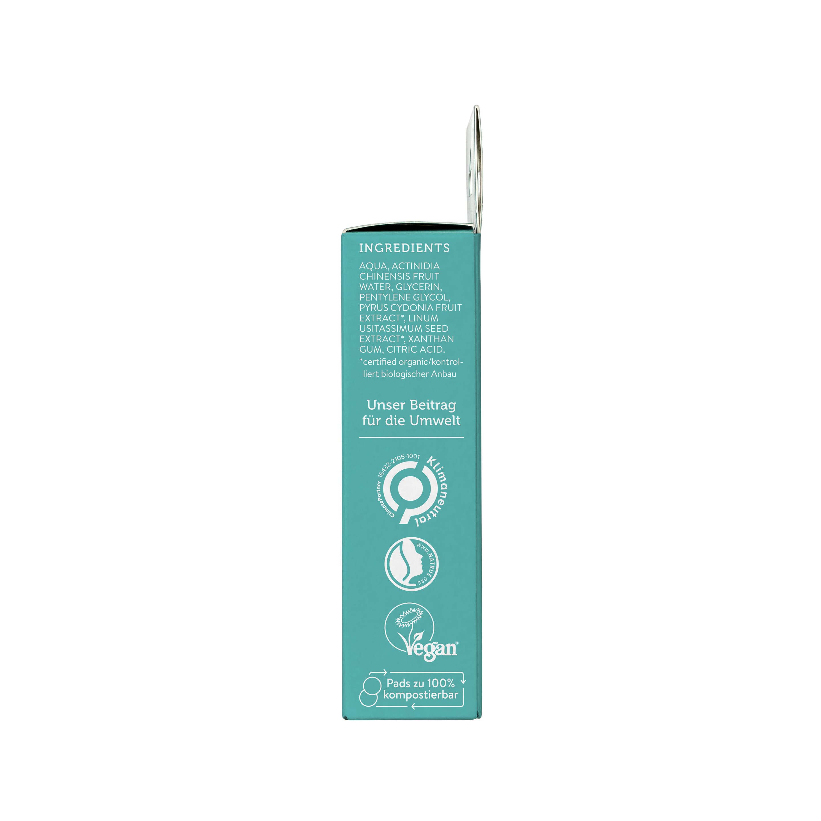 | Inhaltsstoffe | Aqua, Actinidia Chinensis Fruit Water, Glycerin, Pentylene Glycol, Pyrus Cydonia Fruit Extract*, Linum Usitatissimum Seed Extract*, Xanthan Gum, Citrid Acid. *kontrolliert biologischer Anbau. |