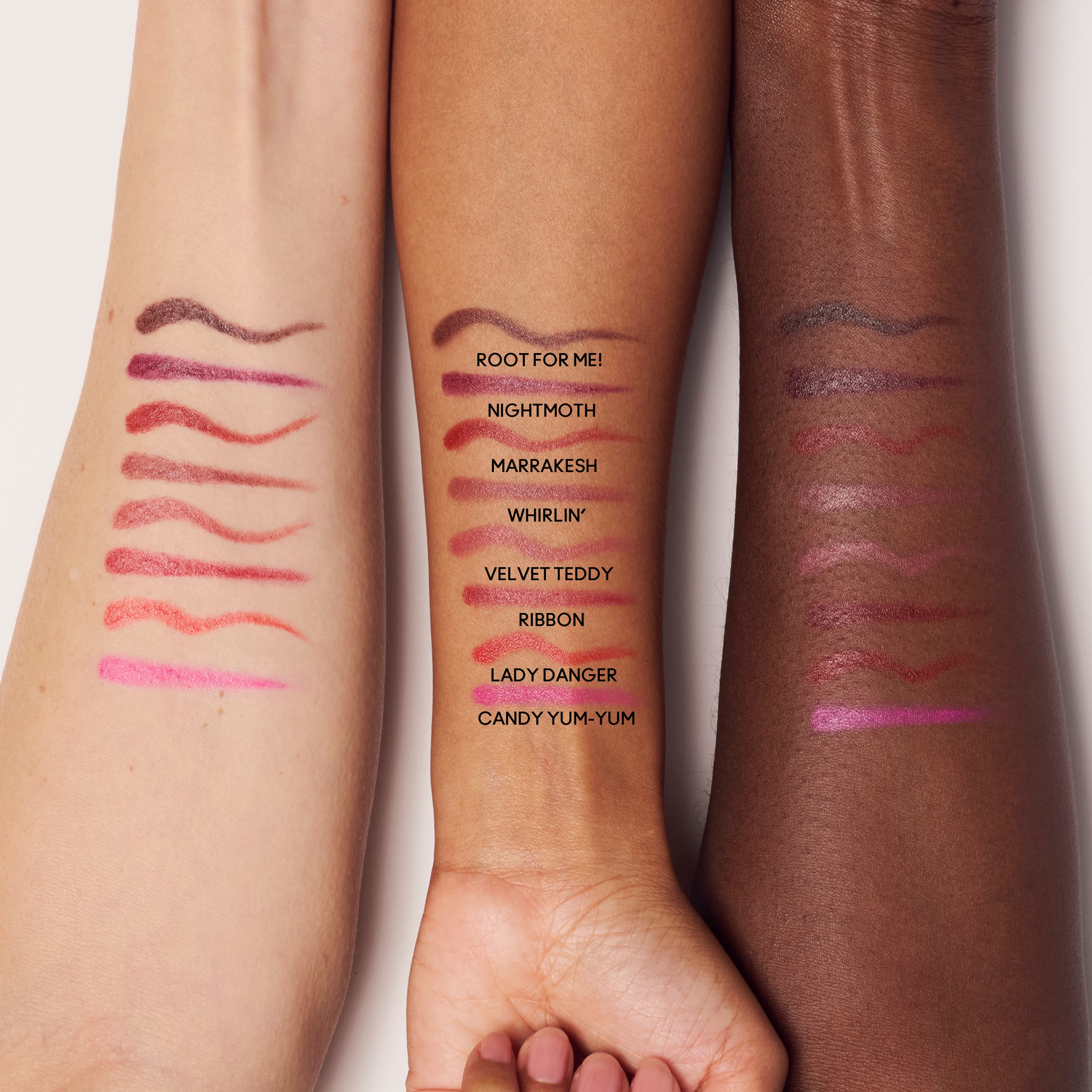 Entdecke unseren NEUEN Glossy Liner, der umrandet, aufpolstert und Volumen verleiht. Definiere und verleihe Glanz mit unserem Gel-Lipliner, der easy aufzutragen ist und endlose Möglichkeiten bietet, um deine Lippen zum Strahlen zu bringen. Dieser einzigartige, sanft schimmernde Lipliner sorgt für voller aussehende Lippen - und ist einfach aufzutragen. Mit der aufbaubaren, cremigen Farbe lassen sich die Lippen wunderbar definieren oder auffüllen. Kein Ziepen, nur Lip Love - der Liner für Gloss-Tage verleiht Volumen mit einer nährenden Mischung aus lippenpflegenden Inhaltsstoffen wie Wiesenschaumkrautsamenöl und Jojobaöl. Mit 8 subtil glänzenden Shades, die deine Lippen zum Glänzen bringen, sind die Möglichkeiten unendlich. Mit den NEUEN Overnight Shades und unseren ikonischen Farbtönen wie Velvet Teddy, Candy Yum-Yum, Nightmoth und Lady Danger kannst du von sanft bis wild alles ausprobieren.