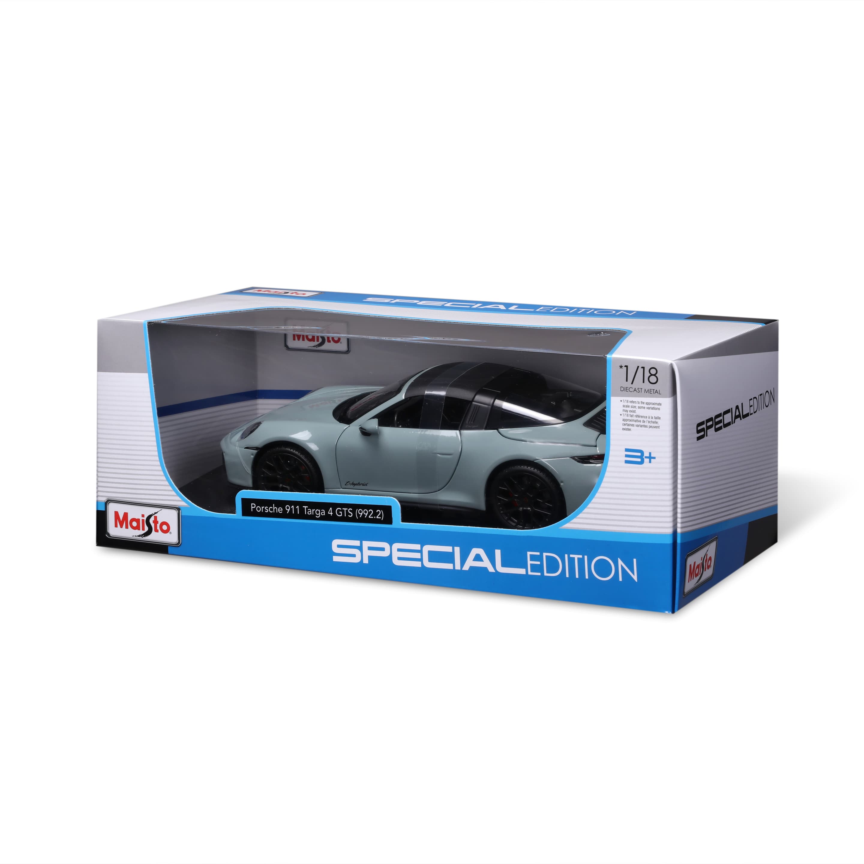 Der Facelift-Sportwagen mit 485 PS von Porsche! Maisto hat den Porsche 911 Targa 4 GTS (992.2) originalgetreu und detailverliebt als Metallspritzgussmodell im Maßstab 1:18 mit detailgetreuem Interieur sowie beweglichen Türen nachgebildet. Das grüne Sammlerauto ist ein Muss für jeden Porsche-Liebhaber und ein Blickfang für die Vitrine! Als Spielzeug eignet sich der Modellwagen für Kinder ab 3 Jahren.