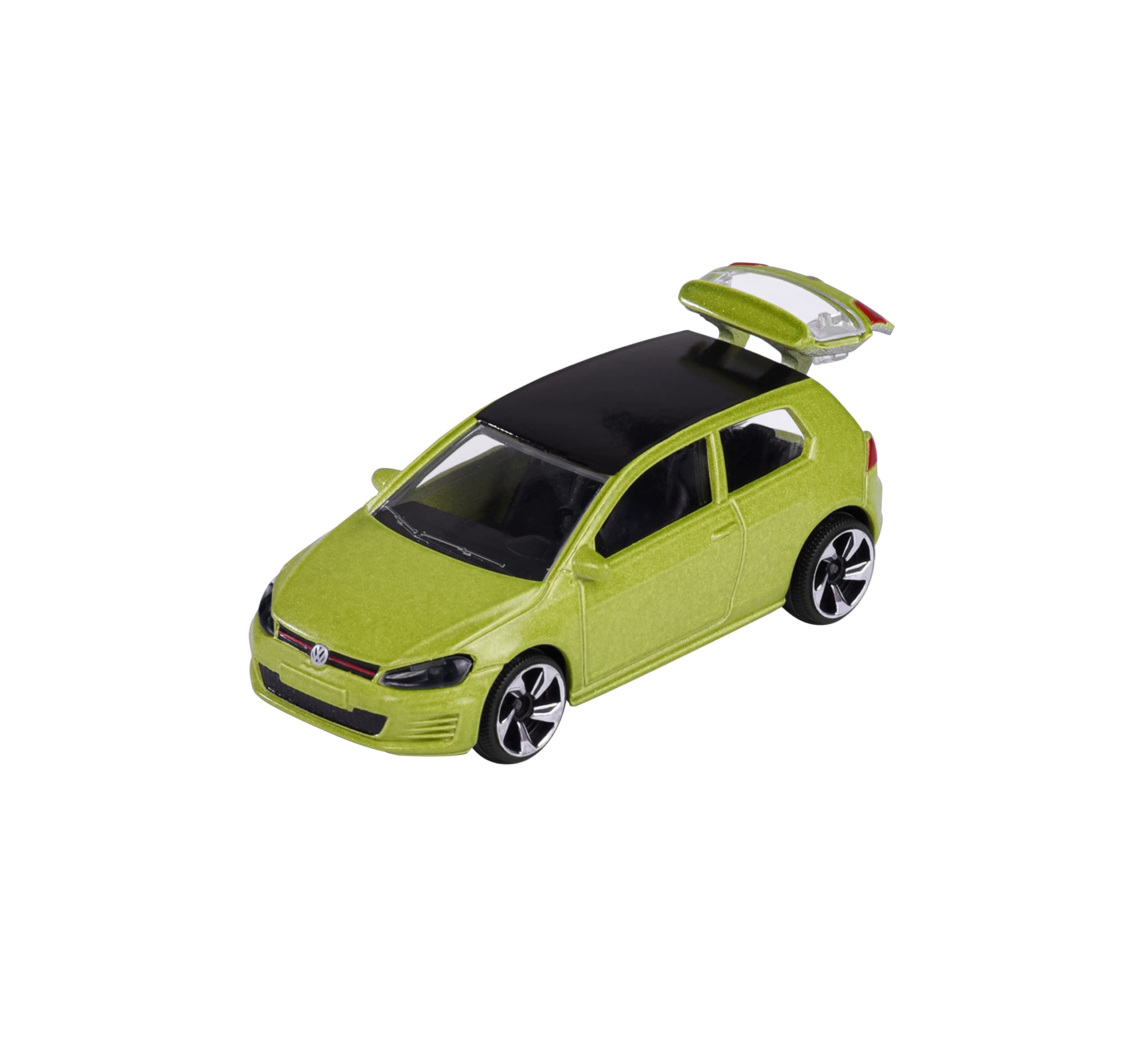 Dieses Modellauto überzeugt durch seine originalgetreue Gestaltung mit transparenten Frontlichtern und einem detaillierten Interieur. Dank des Freilaufs und der Federung sind auch kleine Rennen möglich. Die beweglichen Teile, wie die zu öffnende Heckklappe, laden zum Entdecken ein und fördern spielerisch die Motorik. Das Fahrzeug wird zusammen mit einer Sammelkarte geliefert, die interessante Fakten zum Volkswagen Golf GTI verrät.