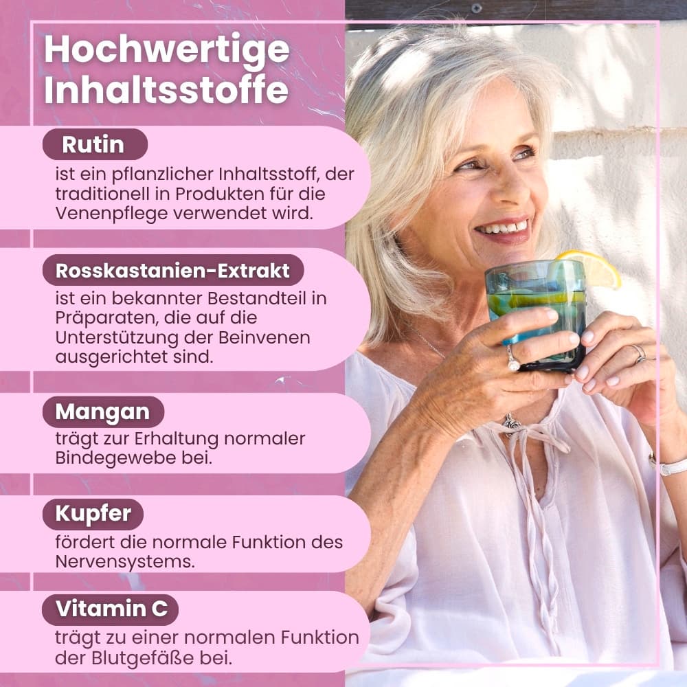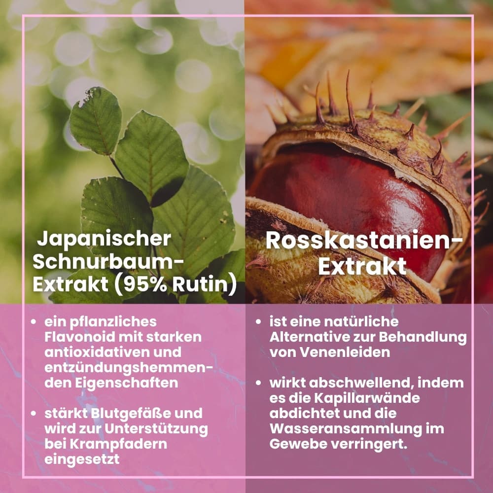 • Mit Rosskastanie und Japanischem Schnurbaum-Extrakt (natürliche Quelle für Rutin)