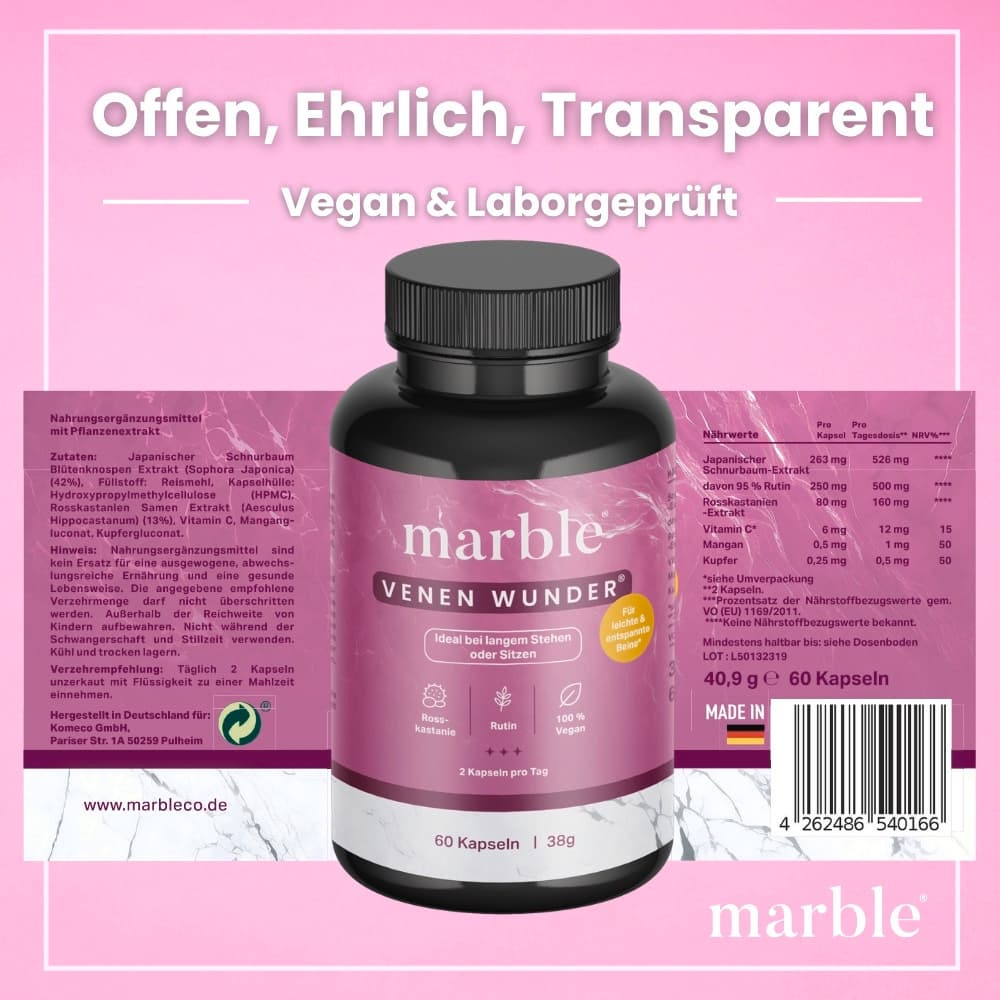 Nahrungsergänzungsmittel: marble Venen Komplex – Für leichte & entspannte Beine