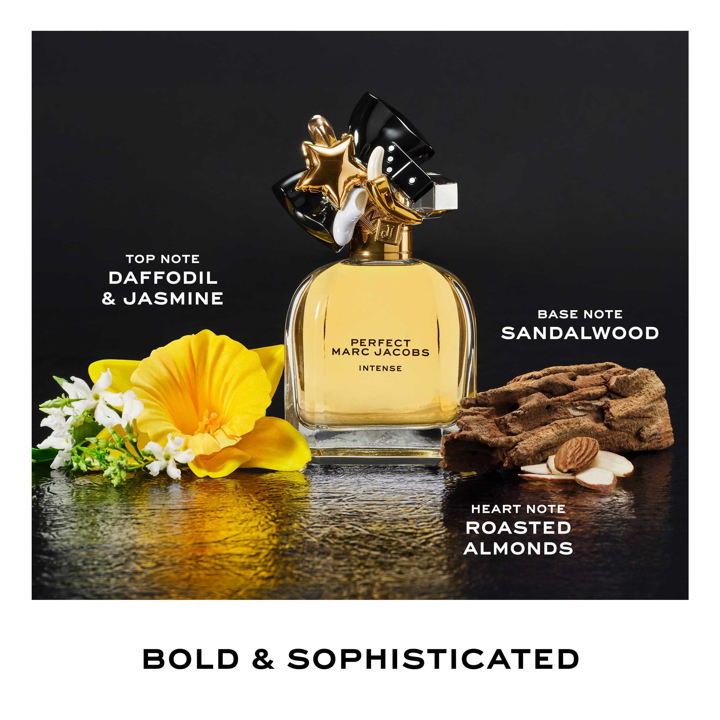 Absolut perfekt - so wie Du bist! PERFECT INTENSE MARC JACOBS ist ein blumiges Parfüm für Damen mit nussigen Noten, ein absoluter WOW-Duft mit Tiefe und Persönlichkeit. Dieses angenehme, blumige Eau de Parfum ist ein starkes Duft-Statement, eine Hommage an Dich Selbst, welches Dich ermutigt, jede Facette Deiner Persönlichkeit zu zelebrieren: Getreu dem Motto des Designers #PerfectAsIAm – denn genauso wie Du bist, bist Du perfekt! Das langanhaltende, intensive Parfüm öffnet seinen Duft mit cremigem, nachtblühendem Jasmin, der für eine angenehme Süße sorgt, die sich mit der Narzisse in einem faszinierenden, sonnigen Bouquet verbindet. Geröstete Mandeln im Herzen sorgen für ein nussiges Aroma, das den floralen Noten eine besondere Textur verleiht und durch eine Prise rosa Pfeffer fein abgerundet wird. Sesamöl, Cashmeran und Sandelholz verbinden sich in der Basisnote. Der faszinierende Gourmand-Duft von MARC JACOBS ist ein langanhaltendes, goldenes Elixier in einem ausgefallenen Flakon, verziert mit einer einzigartigen Sammlung von aussagekräftigen Charms. Die verschiedenen Charms, von Marc Jacobs persönlich ausgewählt, reflektieren all die verschiedenen Facetten, die Dich zu dem machen, was Du bist.
