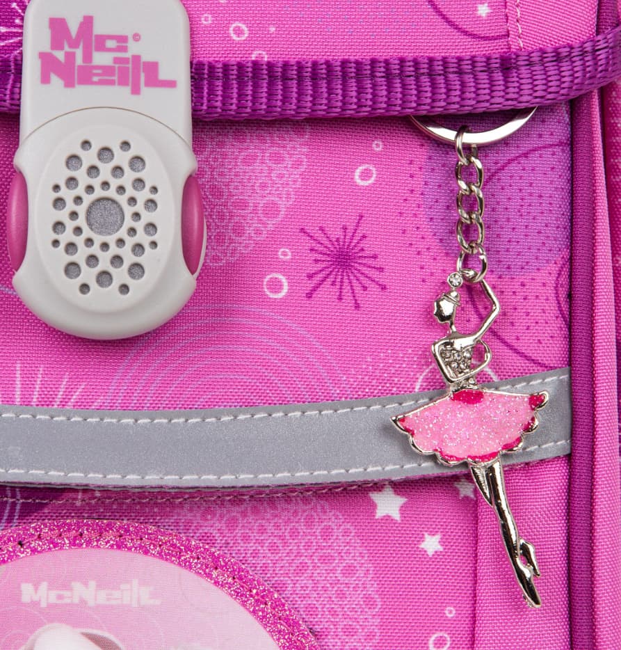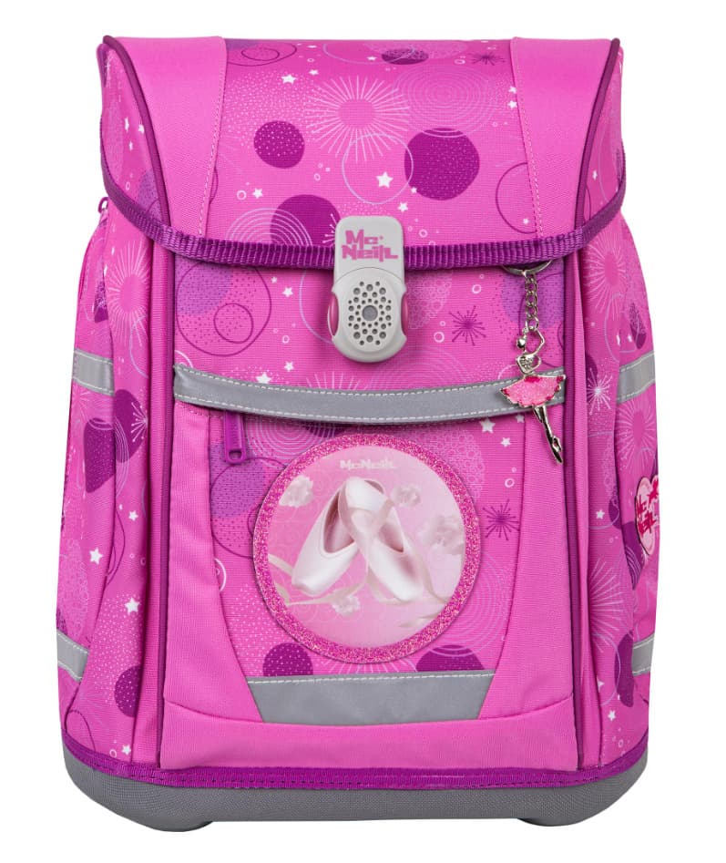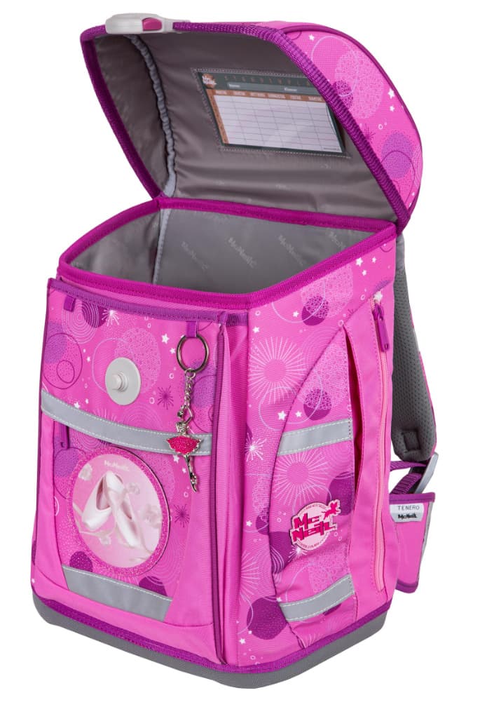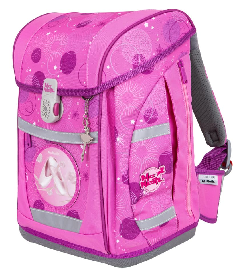 McNeill Tenero – Kollektion 2025- unser neuer stylisches Leichtgewicht. Mit der funktionellen Innenaufteilung, dem stylischen reflektierenden Magnetschloss. Alle unsere Ranzen 2024 sind mit dem ClickFlex Rückensystem ausgestattet. Der McAddy auf der Front ist wechselbar oder einfach ohne McAddy tragen. Die Seitenfächer sind mit Reißverschluss ausgestattet, für die Trinkflasche, Schirm etc.. Mit verstellbaren Bauch- und Beckengurt. Durch die gepolsterten Schultergurte, ein angenehmes Tragegefühl. Die reflektierenden Doppelstreifen sorgen für die gute Sichtbarkeit im Straßenverkehr. 980g.